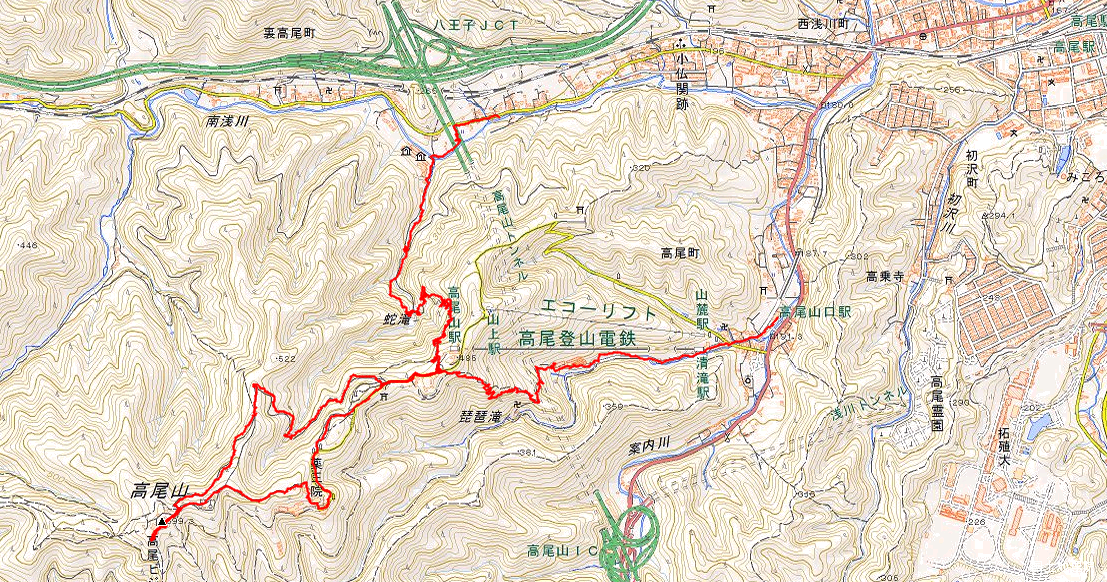 コース 高尾駅北口バス停9:12⇒9:22蛇滝口バス停9:24〜9:54蛇滝・水行参籠所〜10:252号路分岐〜10:29霞台園地(休憩)10:35〜10:39浄心門〜(4号路)〜10:51みやま吊り橋〜11:07いろはの森コース分岐〜11:20 1号路・5号路・4号路合流点〜11:25高尾山山頂(昼食)11:43〜大見晴台〜1号路〜奥の院〜御本社(権現堂)〜御本堂〜仁王門〜山門〜女坂〜杉並木〜浄心門〜12:28霞台園地12:42〜琵琶滝コース〜13:00琵琶滝分岐〜病院道コース〜13:10 6号路分岐〜13:22高尾山口駅