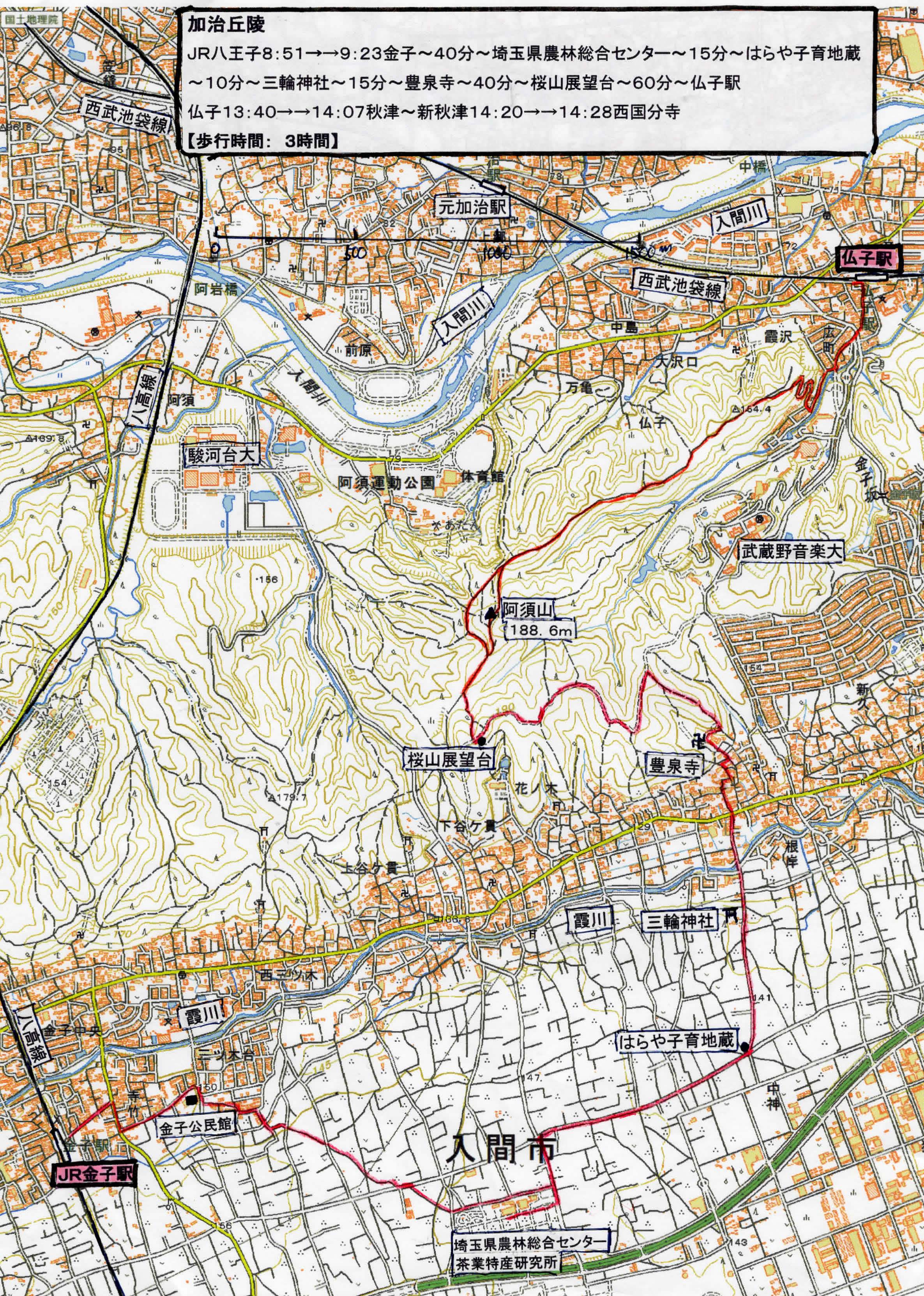 行き先 R八王子8:51→八高線→9:23金子 金子駅9:39〜10:13埼玉県農林総合研究センター茶