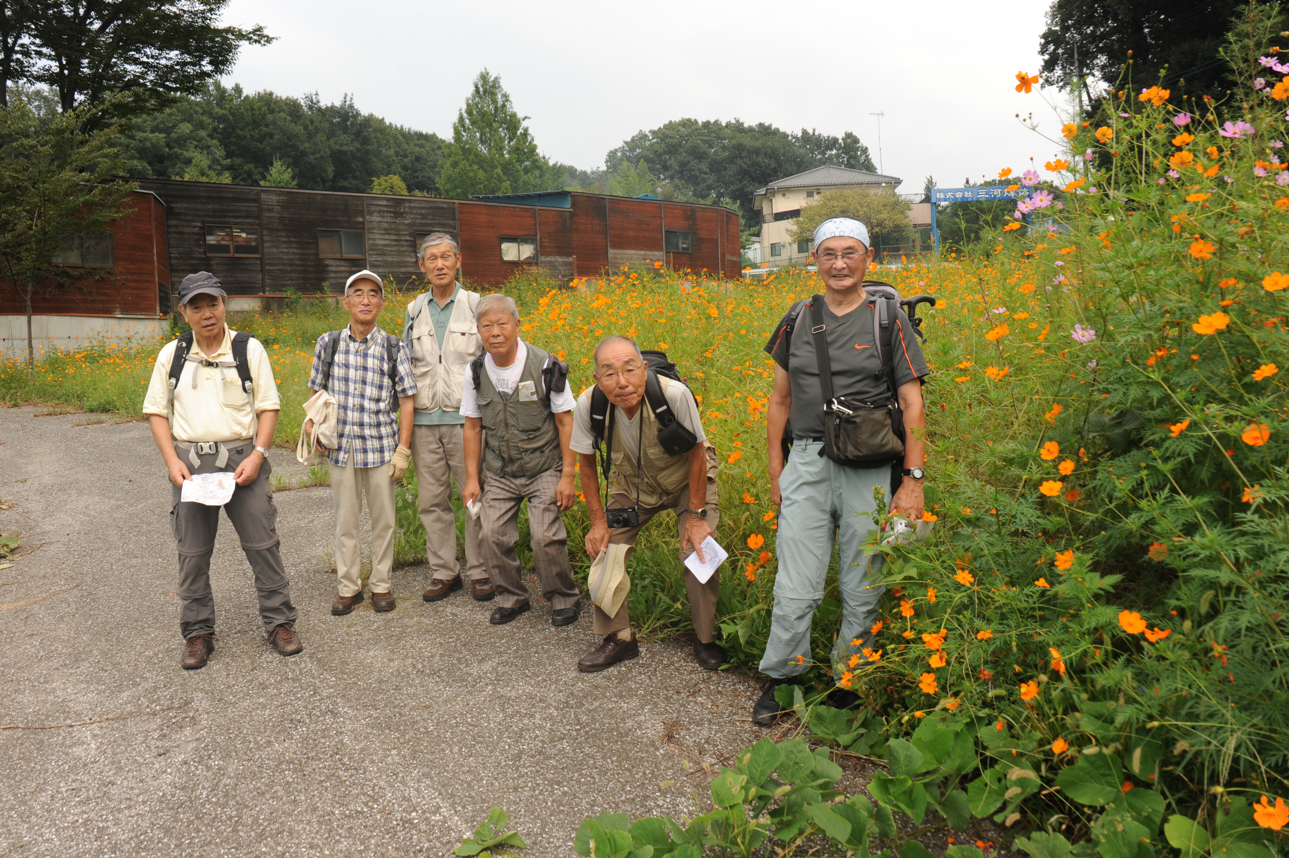 笛吹峠から鳩山町に入る。下って県道41号線に入ると旧街道は県道から少し右や左に逸れてある。それた旧街道の端にコスモスの群生している所があった。