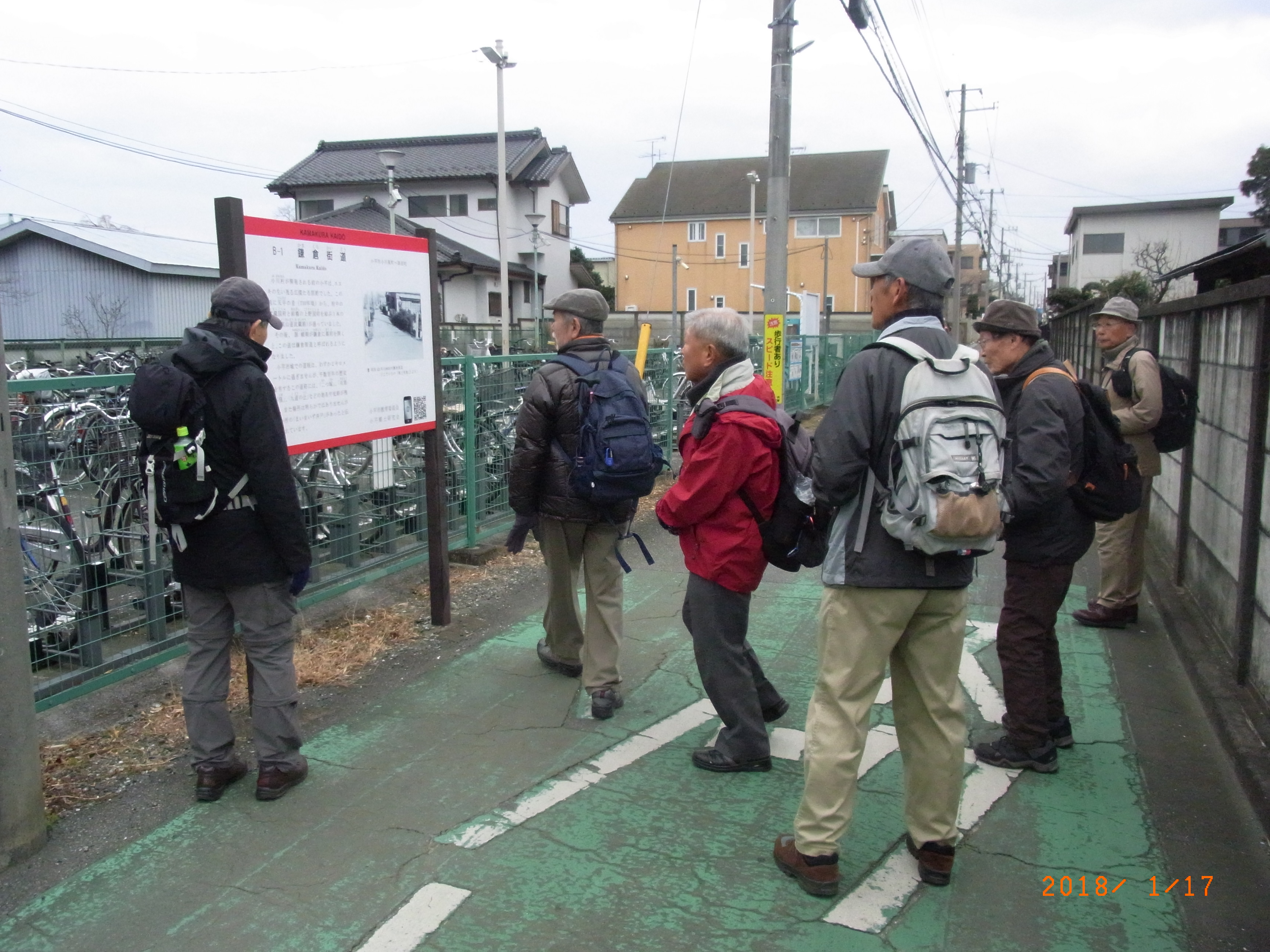 小川駅を出発、府中街道を右折して小学校の南角を左折して、前回通った「九道の辻(八坂交差点)」で消えた旧街道と合流する辻を右折し「鎌倉街道」の標識のある細い道を直進する。青梅街道を横断し更に直進し、鎌倉橋で「新堀用水」「玉川上水」を渡る。ここから東恋ヶ窪五丁目交差点まで旧街道は消滅し道が無いので鷹野街道(都道7号線)から府中街道と大きく迂回する。