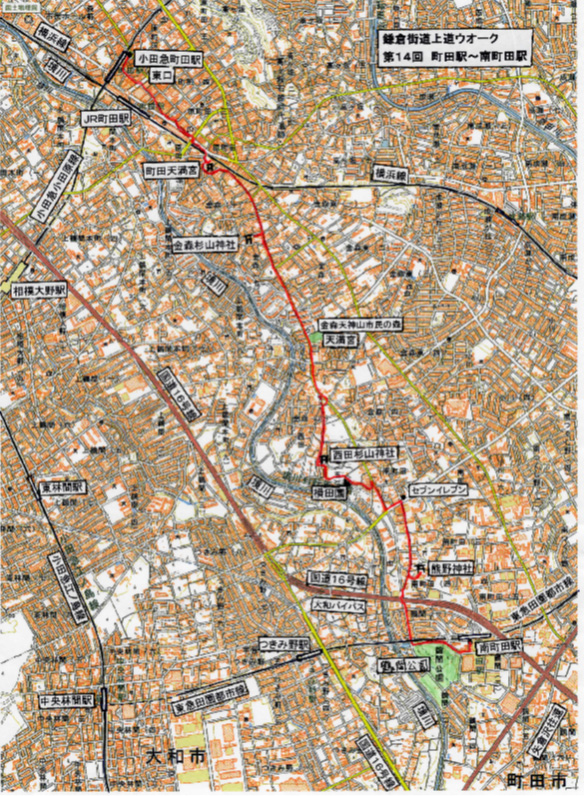 今回は猛暑のため計画の半分に短縮した。次回は第14回計画ゴールの瀬谷駅までにするか、その先(歩行距離10q位)まで延ばすか検討します。そのため、全17回はそれ以上に増えることになり、次回南町田駅からのウオークは第15回とします。