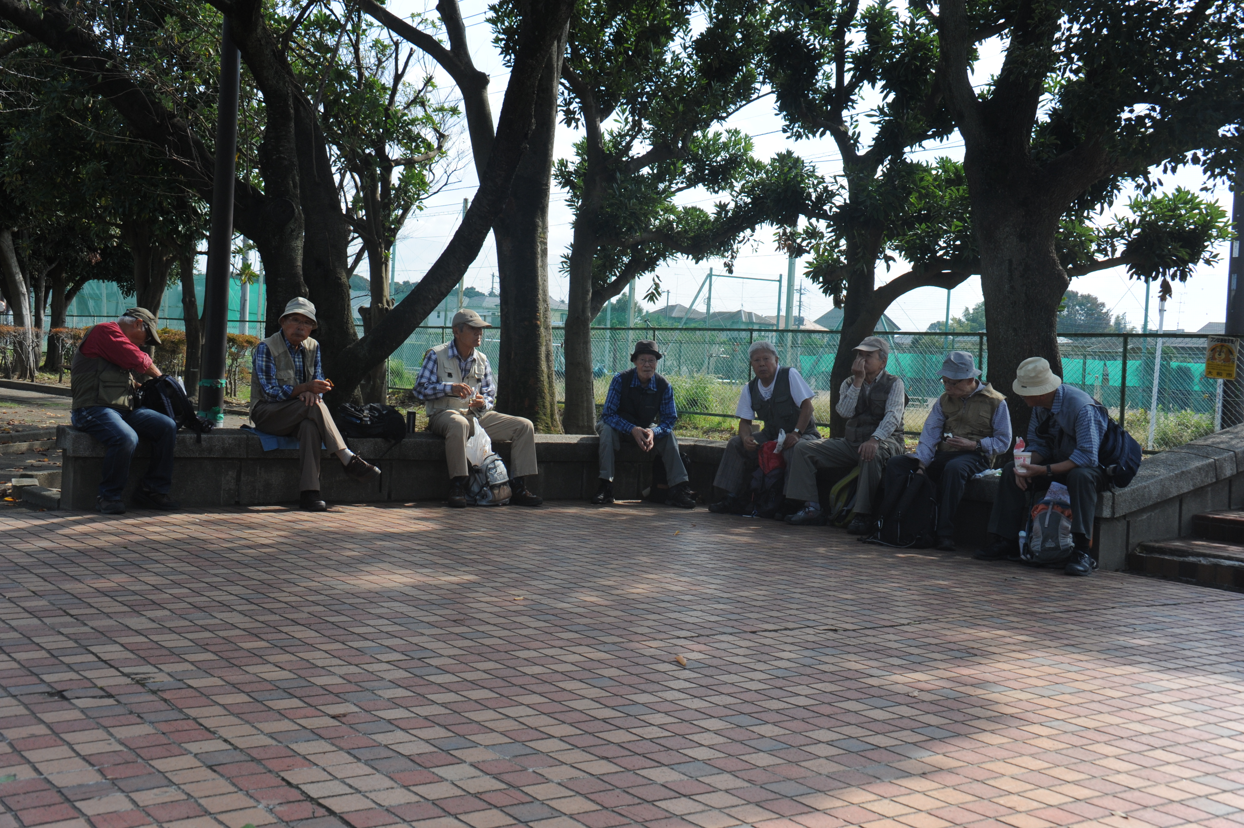 門前に「近くに中原街道瀬谷問屋場があった」との解説板があった。中原街道を横断し直進、住宅地の中を進む。坂を下ると相沢川にぶつかり、川に架かる東橋の手前を右折し、相沢川に沿って進む。童橋で相沢川を渡り川左岸を進むと右側に野球場がある宮久保公園があり、トイレもあるのでここで昼食とする(11:38〜58)。