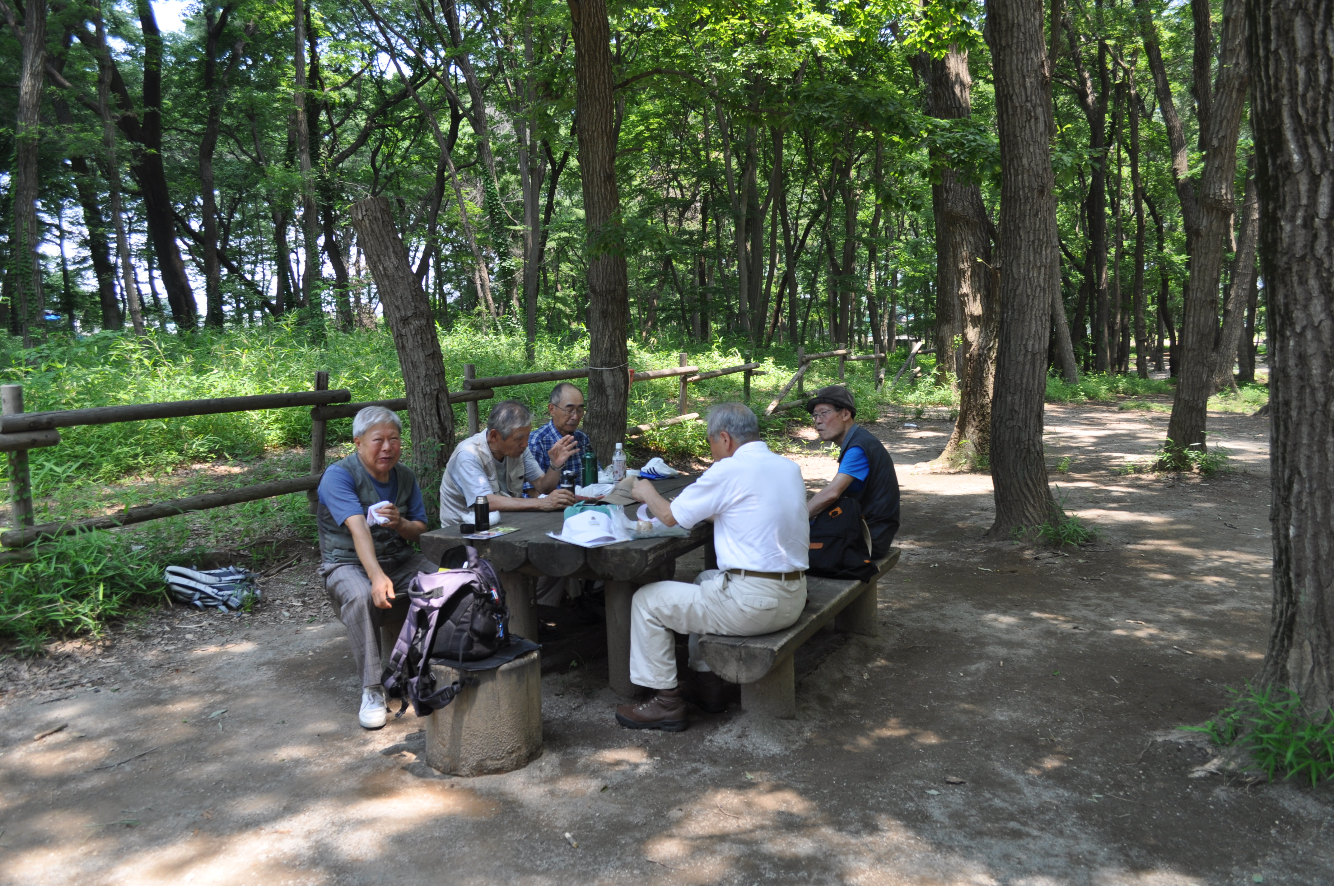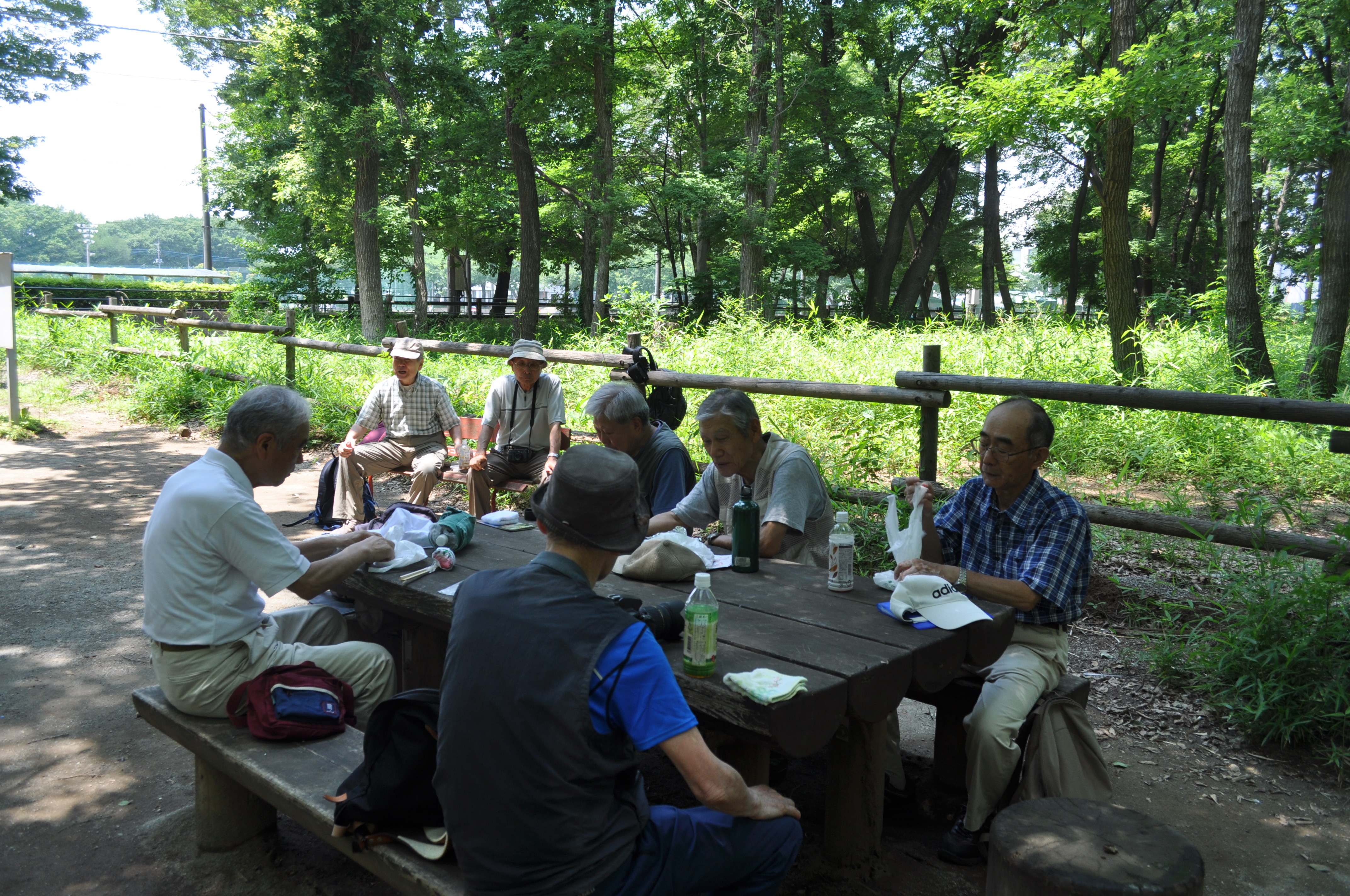 国道のケヤキ並木を1km位進んだ左手に両部鳥居の「木宮稲荷神社」があり、寄って参拝。直ぐ先を左に入ると三芳町緑地公園があるので、ここで昼食をとることにする。雑木林の公園にはベンチが、傍にトイレもあり、涼しく休む場所としては最高。(11:23〜52)