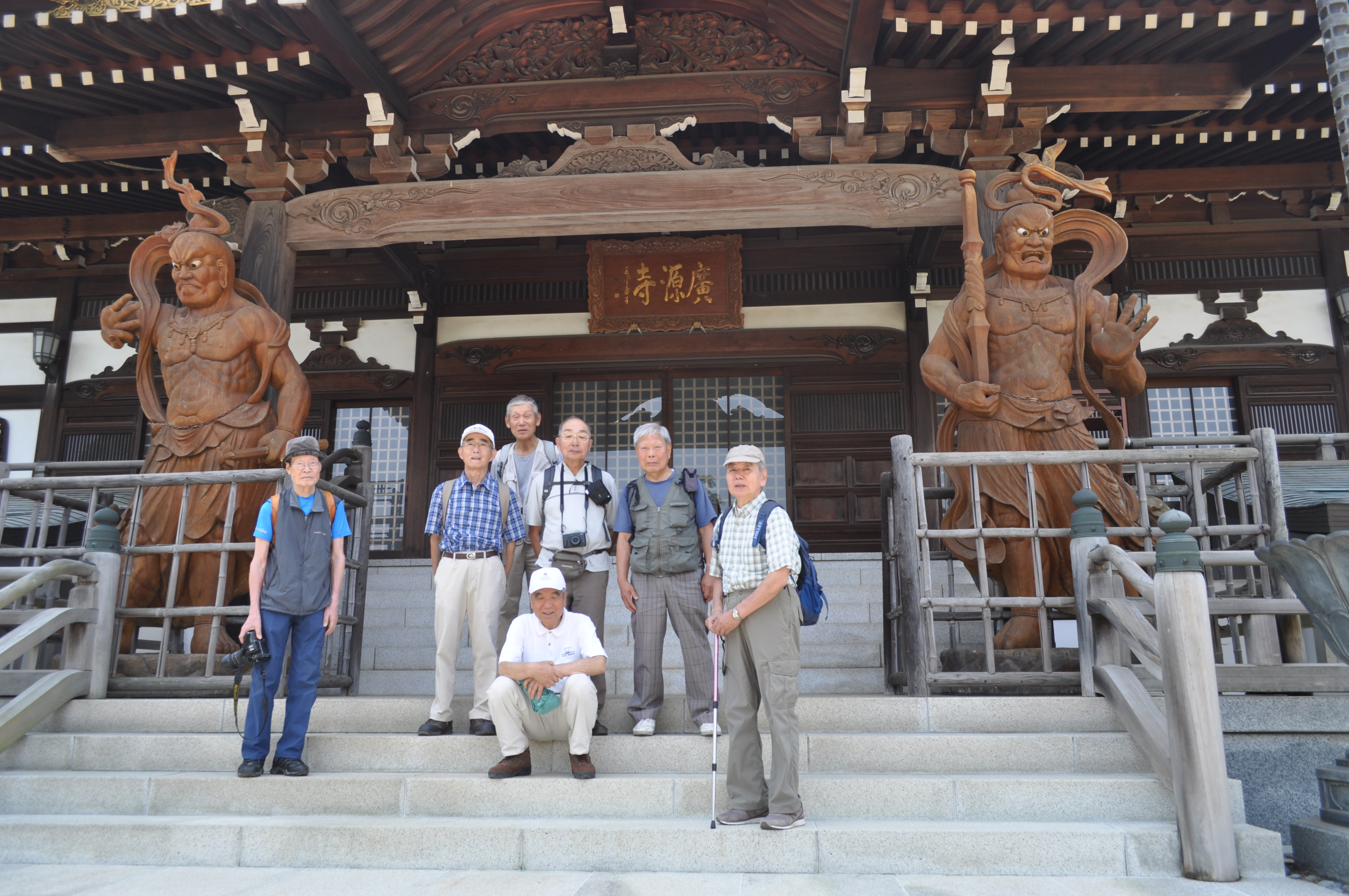 国道に出、ケヤキ並木が途切れた所に、二つ目の「川越街道」石碑がある。ここからは当分、暑い日差しの中を歩く。600m程進んだ左に曹洞宗の「広源寺」があるので寄る。本堂の両脇に、大きな仁王像がある。