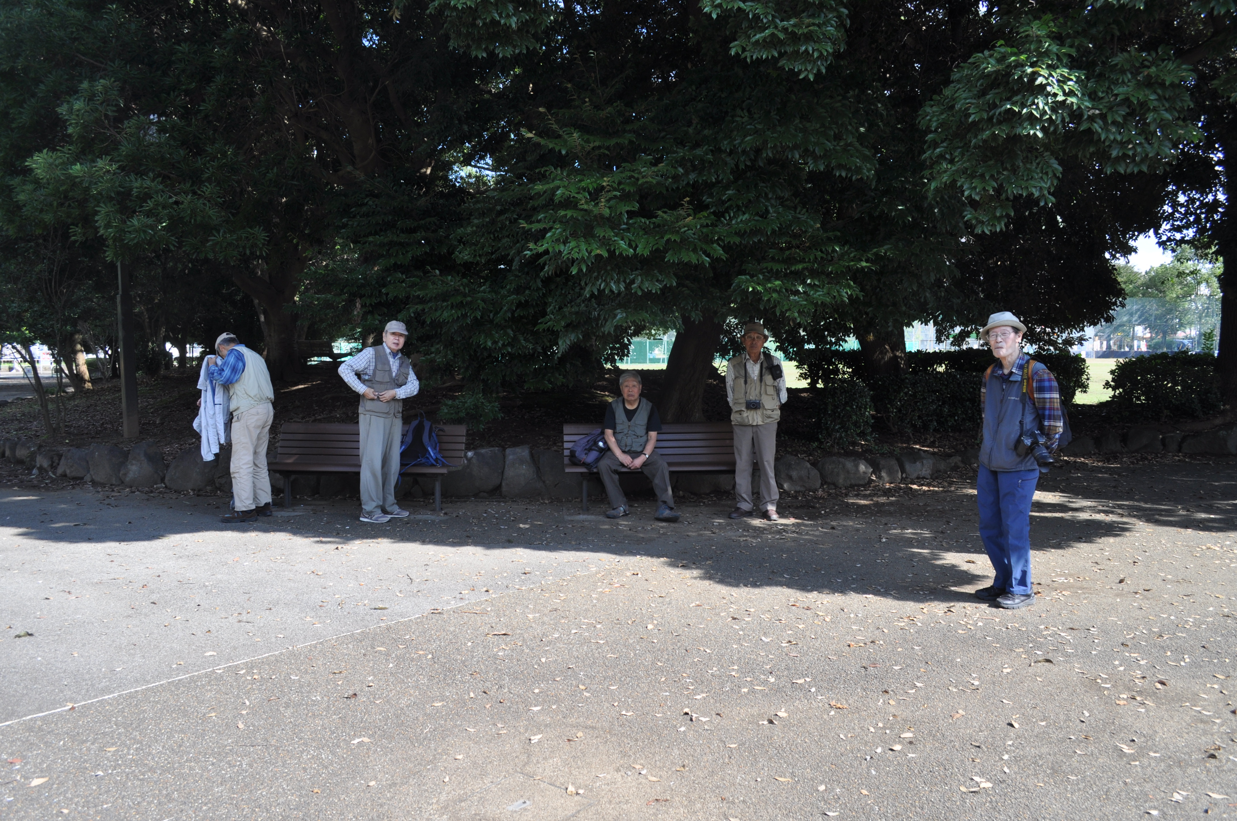 車道を南下してトイレやベンチがある溝端公園に向かい、公園で昼食。(11:40〜12:00)