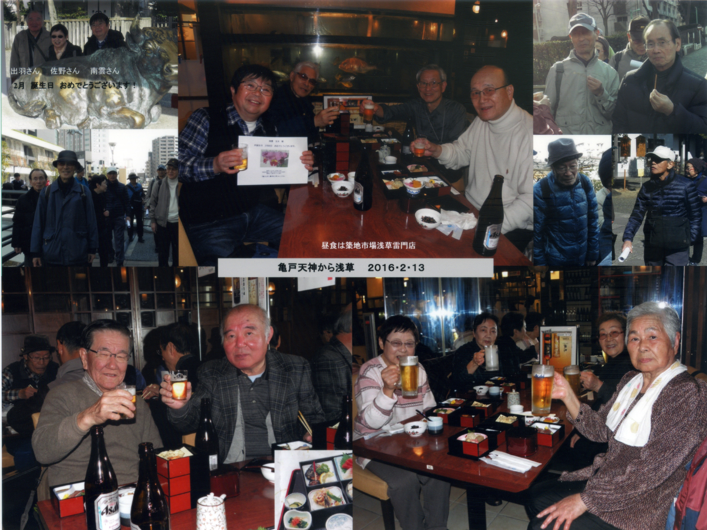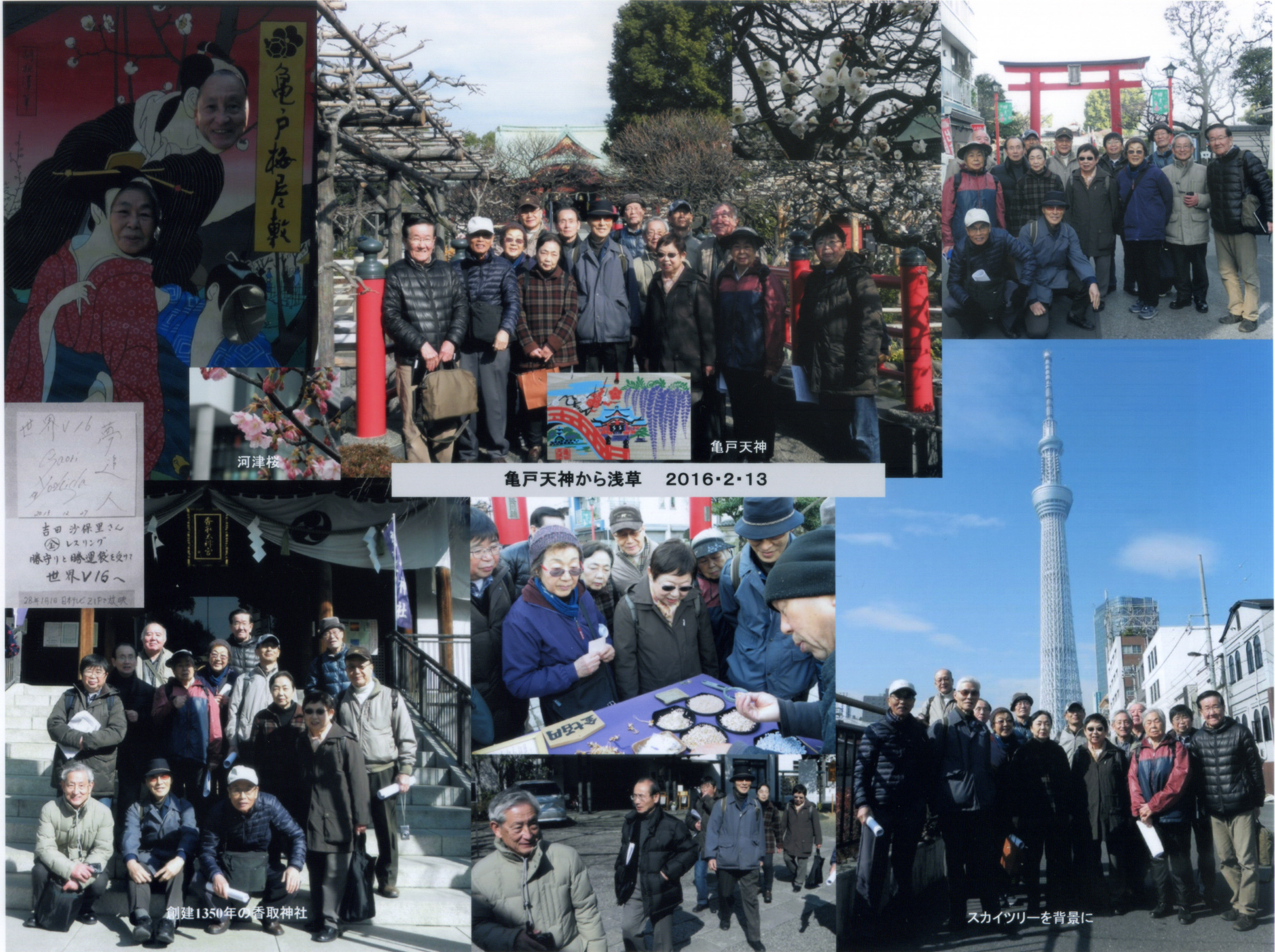 | ■ コース | 錦糸町駅→亀戸銭座→舟橋屋→亀戸天神→亀戸梅屋敷新施設→香取神社→亀戸梅屋敷跡→ 葛飾北斎、法性寺→鬼平情景、春慶寺→天祖神社→吾妻橋→雷門→築地市場浅草店(昼食)
