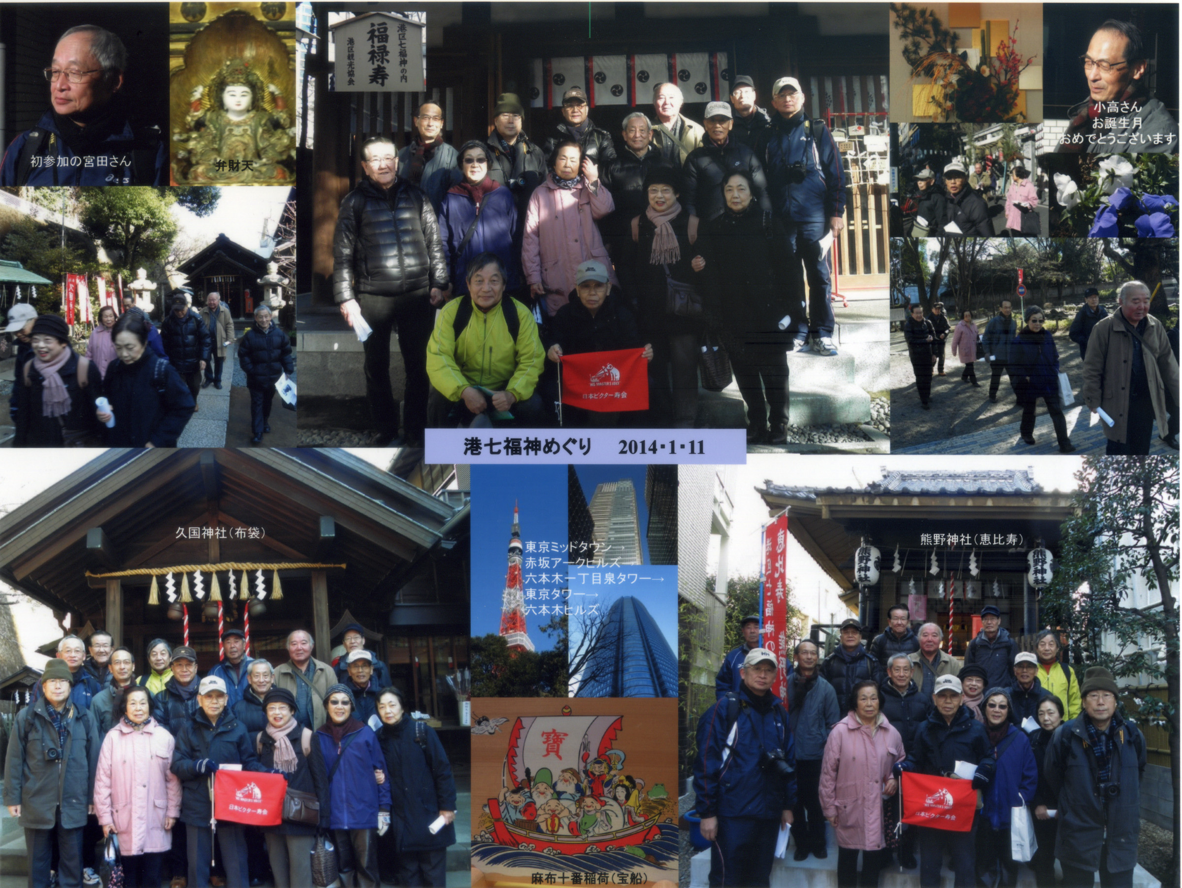 | ■ コース | (東京ミッドタウン→東京タワー→六本木ヒルズの都心歩き) 天祖神社(福禄寿)→久国神社(布袋)→法珠院(弁財天)→十番稲荷神社(宝船)→大法寺(大黒天)→氷川神社(毘沙門天)→櫻田神社(寿老人)→八山 雛鮨、昼食新年会