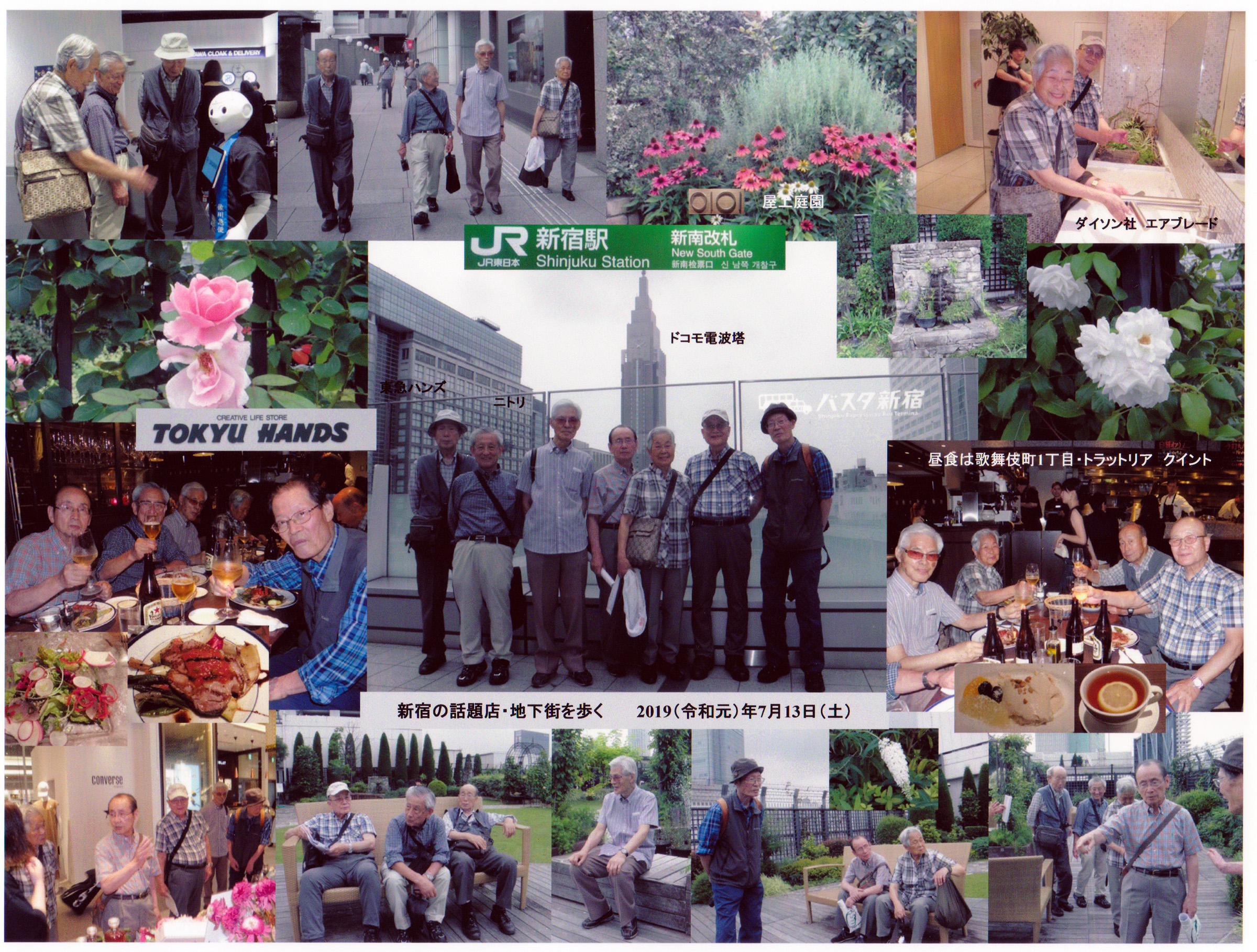 新南改札→dean&deluca見学→観光案内所見学→新宿駅線路上改造→東急ハンズ→ニトリ→最新トイレ手洗器→丸井屋上庭園→トラットリア・クイント(昼食)