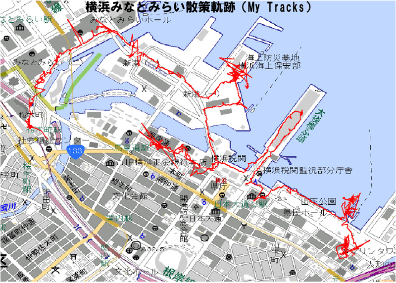 | ■ コース | 桜木町、帆船日本丸、ランドマークタワー、ドックヤード、パシフィコ横浜、工作船展示館、横浜赤レンガ倉庫、横浜三塔、横浜郵船ビル、日本郵船歴史博物館、大桟橋、山下公園、氷川丸見学、マリンタワー、ザ タワーレストラン ヨコハマで昼食(13631歩)