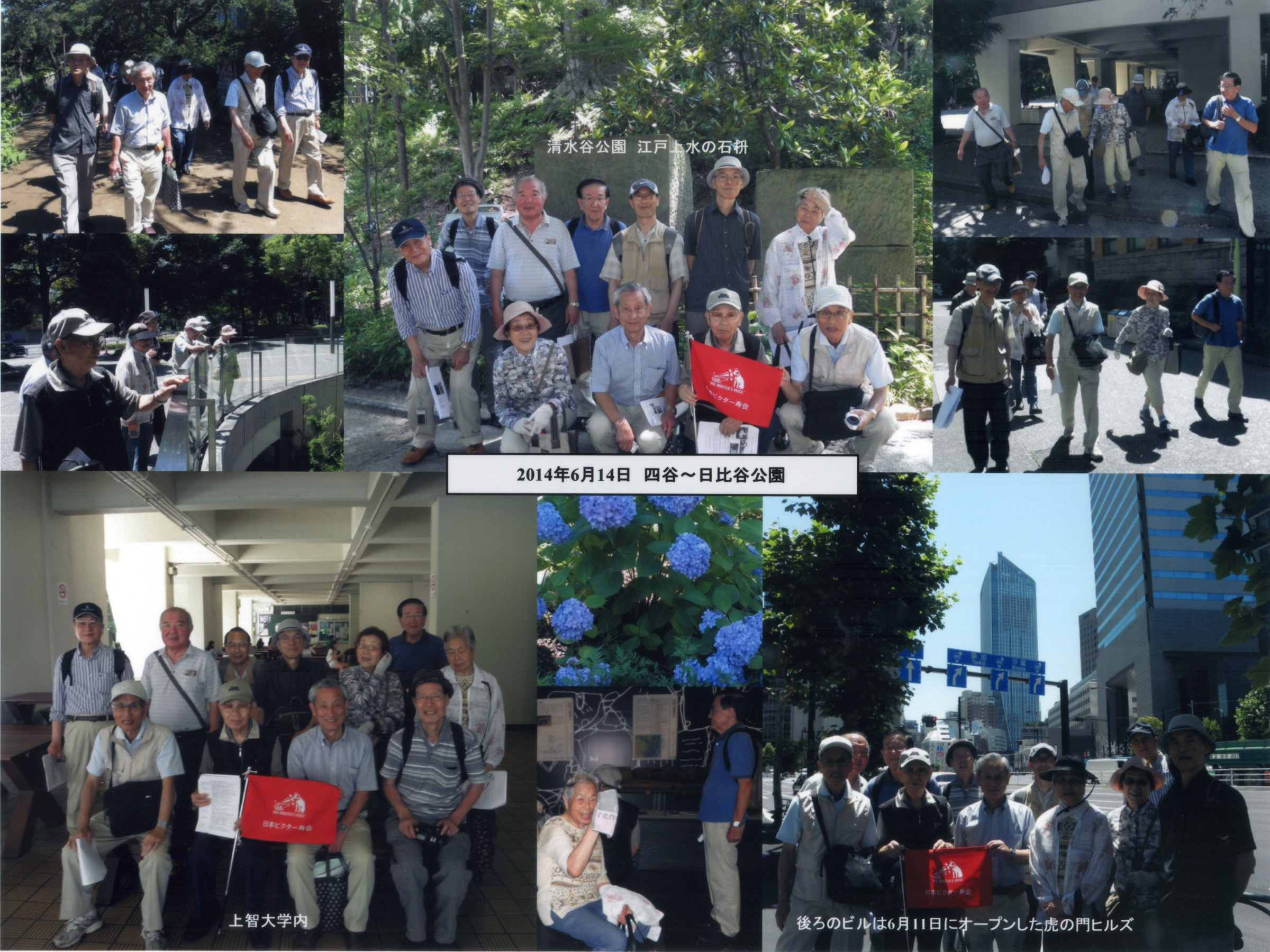 | ■ コース | 四ッ谷駅、四谷見付橋→聖イグナチオ教会→上智大学→外堀(旧真田濠)桜並木→紀尾井坂→清水公園(大久保利通碑、江戸上水の石枡)→赤坂プリンスホテル旧館→江戸城外濠跡、赤坂御門→衆議院議長公邸(松平出羽守屋敷跡)→黒澤(そば処)→ホテルキャピタル東京→首相官邸→溜池発祥の碑→霞が関ビル→旧江戸城石垣「江戸城外濠」→日比谷公園→有楽町・かごしまアンテナショップ(昼食)