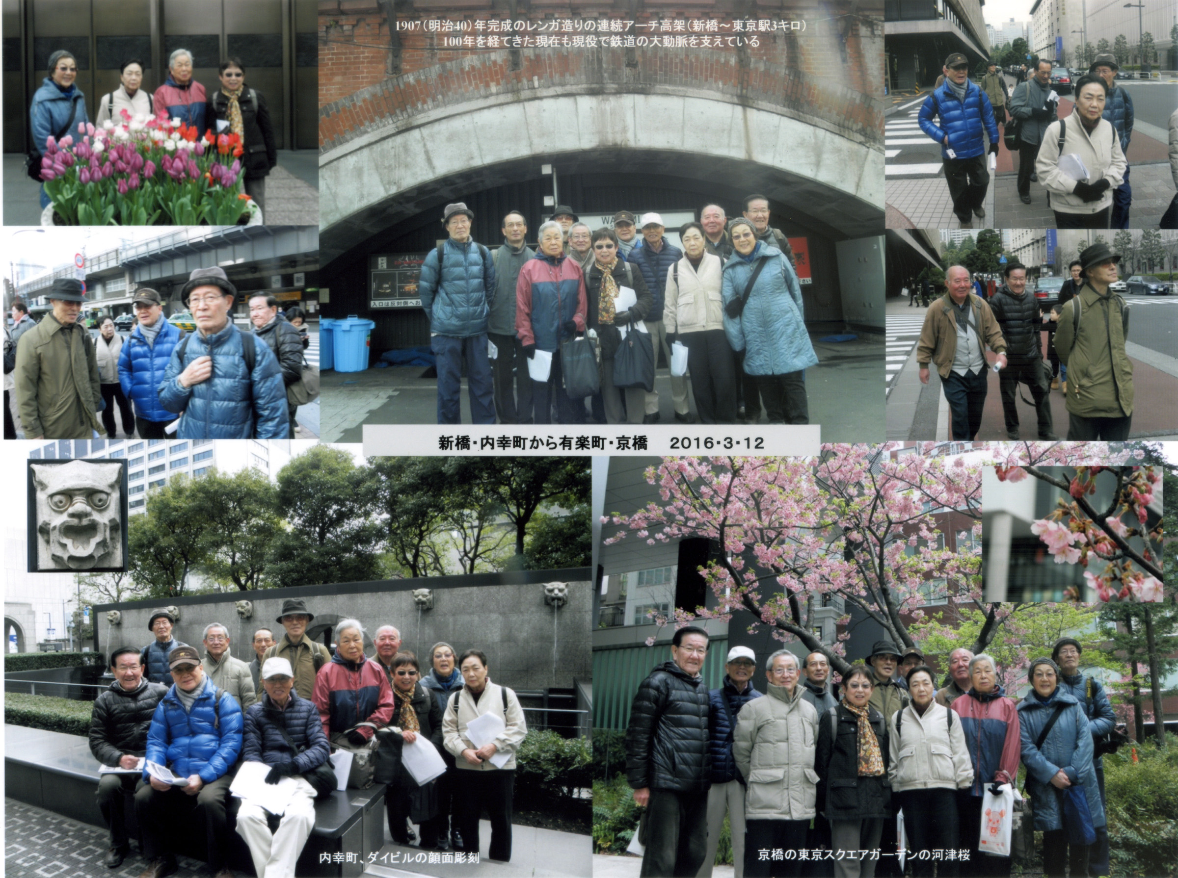 | ■ コース | 新橋駅→新橋・土橋→内幸町と幸橋→レンガ造りのアーチ橋→東京府庁官舎跡→ダイビルと動物→帝国ホテル界隈→市政会館・日比谷公会堂 →日比谷図書文化館→日比谷公園→中央区立泰明小学校→オーバカナル→数寄屋橋界隈→フランク永井→交通会館3階→京橋→随園別館(昼食)