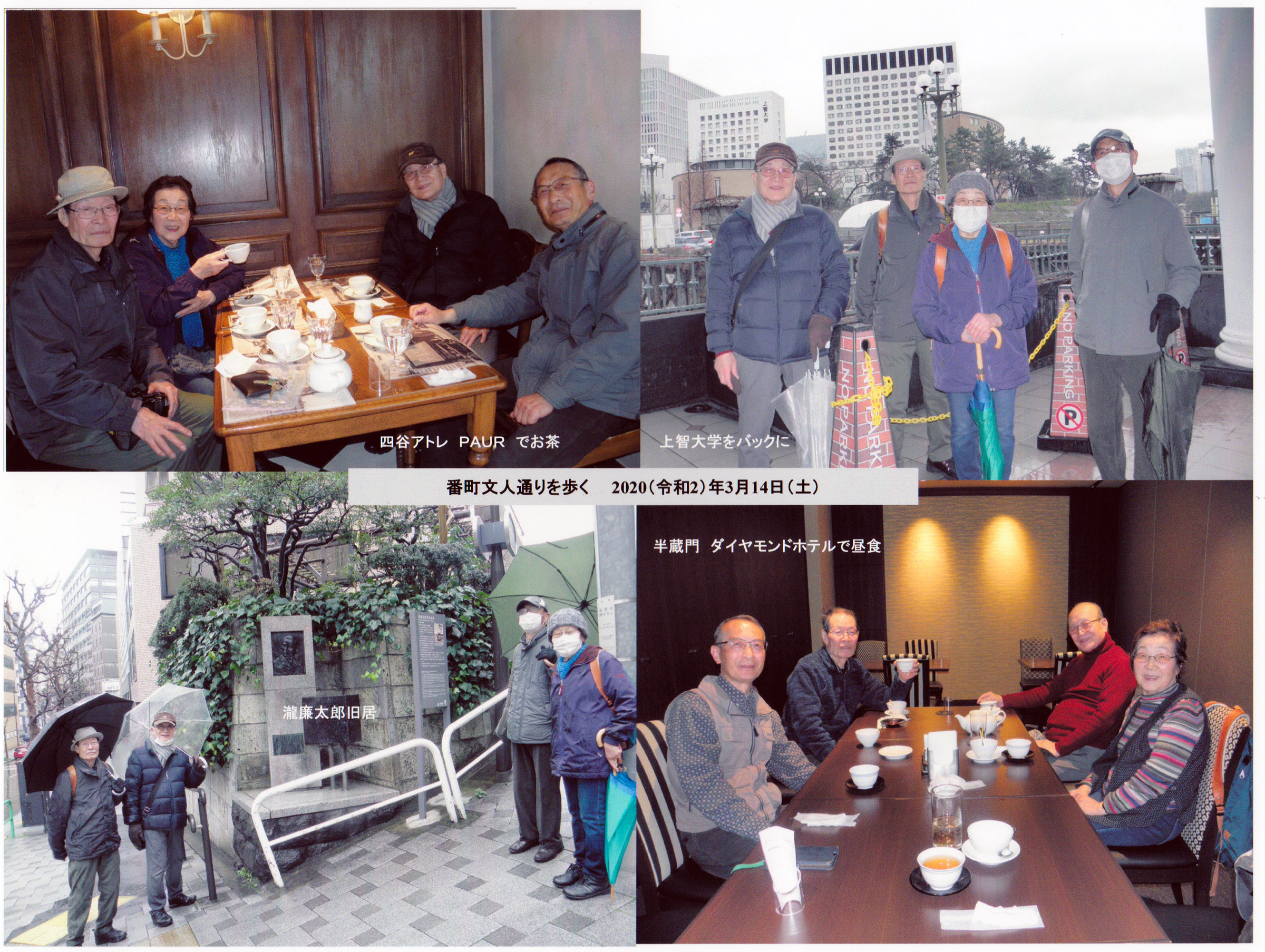 →番町文人通り→滝廉太郎住居跡→袖摺坂→ダイヤモンドホテル(昼食)