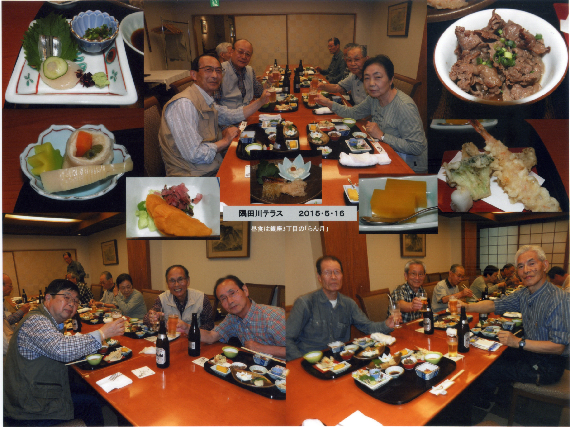 隅田川大橋→>永代橋→中央大橋→佃大橋→聖路加タワ−→築地スタジオ跡→銀座らん月(昼食)
