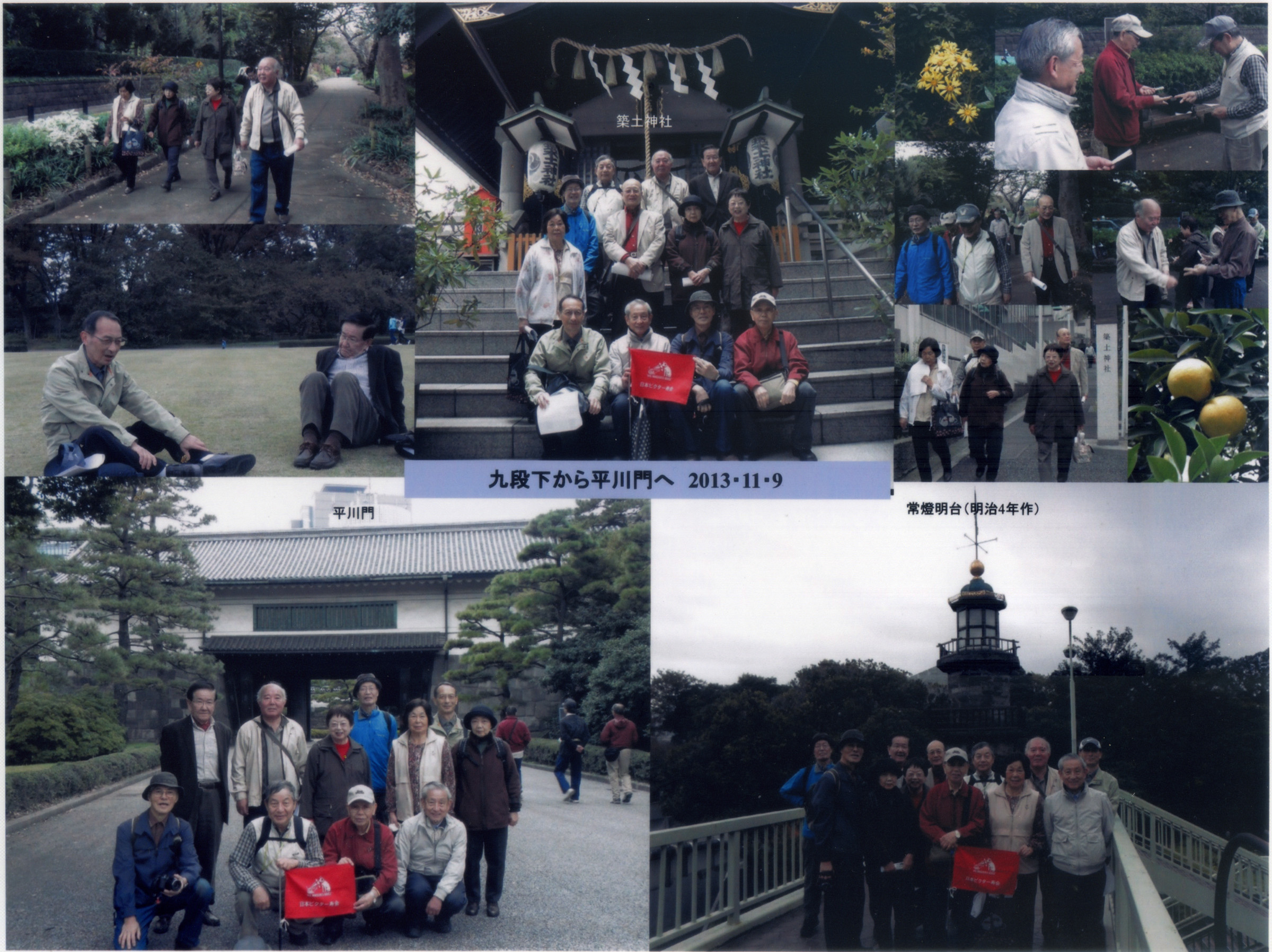| ■ コース | 半蔵門線、九段下駅→濠北方面戦没者慰霊碑→築土神社→硯友社跡→滝沢馬琴硯の井戸→九段坂→常灯明台→大山 巌銅像→千鳥が淵ガーデンロード→代官町通り→国立近代美術工芸館→国立公文書館→北詰橋門→皇居東御苑→旧本丸→梅林坂→平川門
