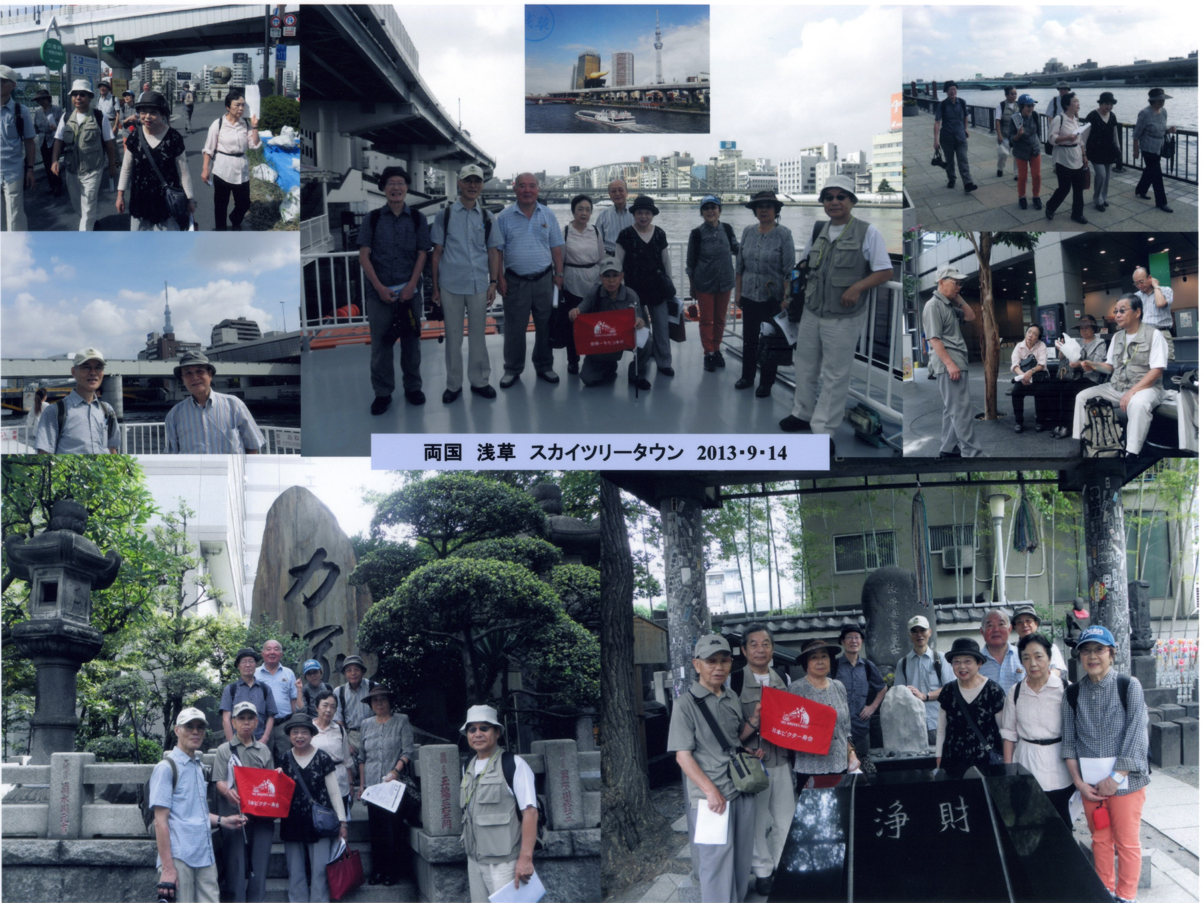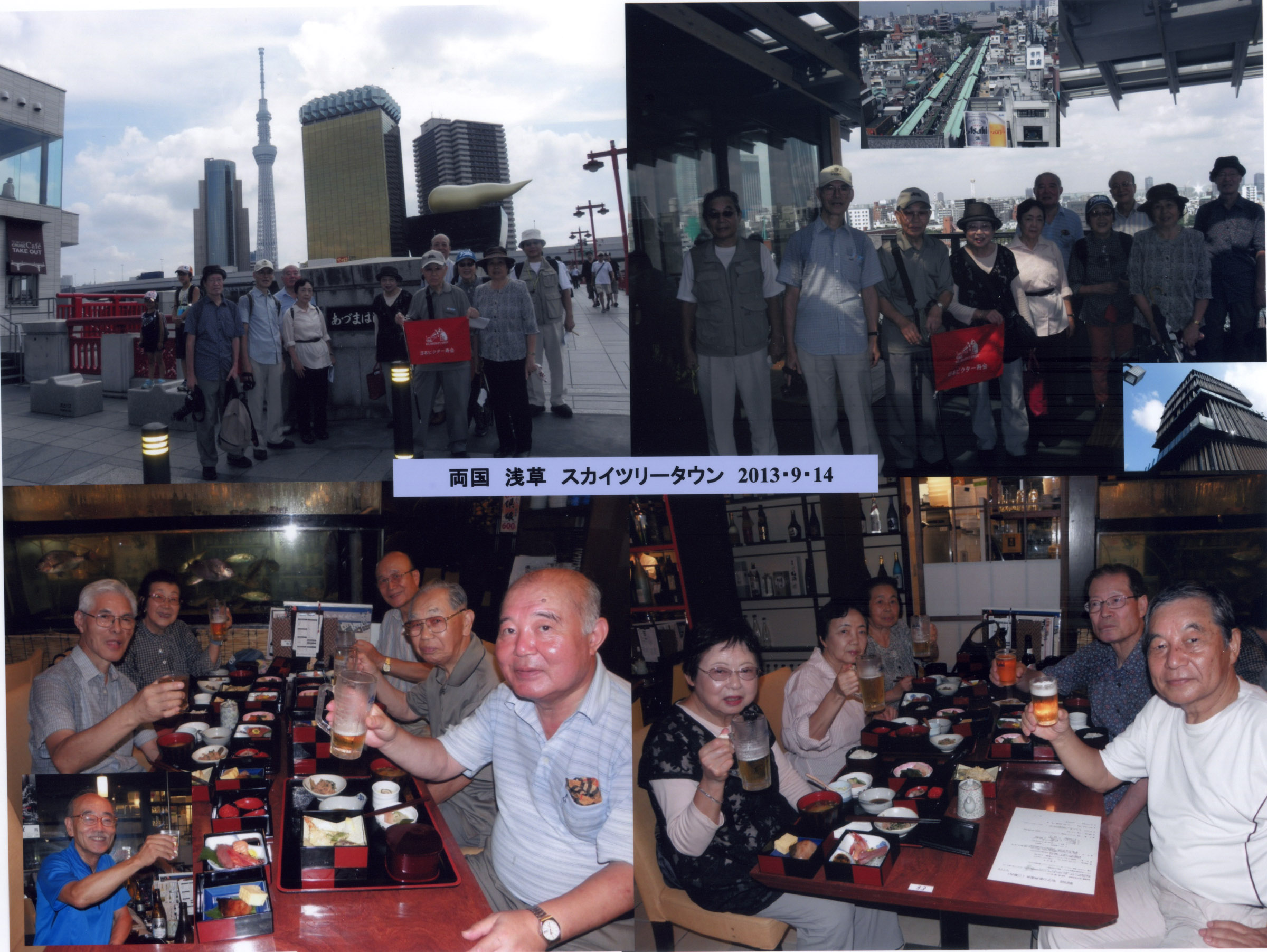 | ■ コース | JR両国駅西口→回向院→水上バスで浅草→吾妻橋→勝海舟銅像前→墨田区役所→スカイツリー直下→東京ソラマチ→浅草文化観光センター→浅草雷門パゴダ浅草3F、築地市場浅草雷門店で昼食(11385歩)
