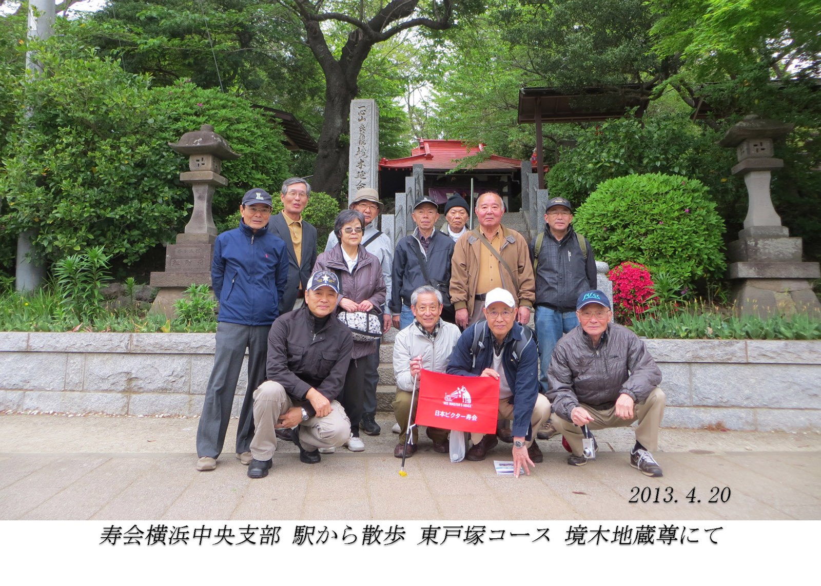 ☆開催日時 平成25年 4月20日(土)午前10時 JR東戸塚駅集合☆散歩コース 本日の散歩は、旧東海道9番目の一里塚(品濃)から、保土ヶ谷宿に向けて旧東海道を上るコースでした。 東戸塚駅→福寿観音→品濃一里塚→焼餅坂→境木地蔵尊→権太坂→保土ヶ谷一里塚 →保土ヶ谷宿→旧帷子橋跡→相鉄天王町駅 ☆途中の見どころ 旧東海道の時から、ほぼ完全な形で残る唯一の品濃一里塚から焼餅坂をのぼり、昔の国境(武蔵・相模)から命名されたといわれる境木地蔵尊で、休憩と写真撮影。 一気に権太坂(2番坂・1番坂)を下り、保土ヶ谷宿に到着。復元した松並木プロムナード、8つ目の一里塚を散策。旅籠本金子屋跡、本陣跡など眺めながら保土ヶ谷駅、旧帷子橋跡・天王町駅まで、2時間5分の散歩でした。 初参加の松本さんも最後までお元気に、完歩されました。 ☆参加者 12名(アイウエオ順、敬称略) 飯田耕治郎、香川佐知子、熊倉達郎、佐々木一三、新谷則雄、鈴木隆雄、出羽善武、平塚 直、古川 正、 松本 築、山本三樹夫、吉田親司、 |