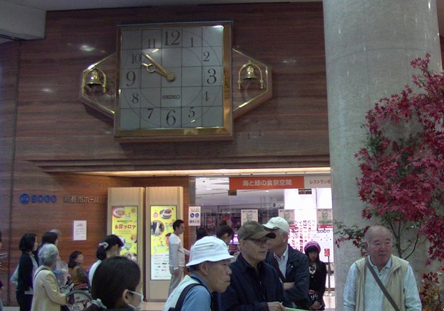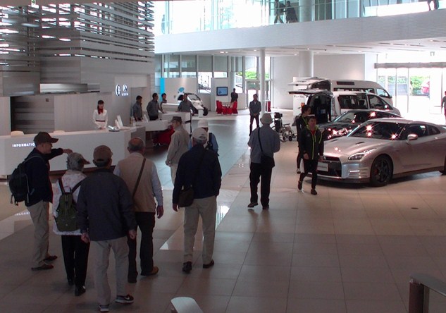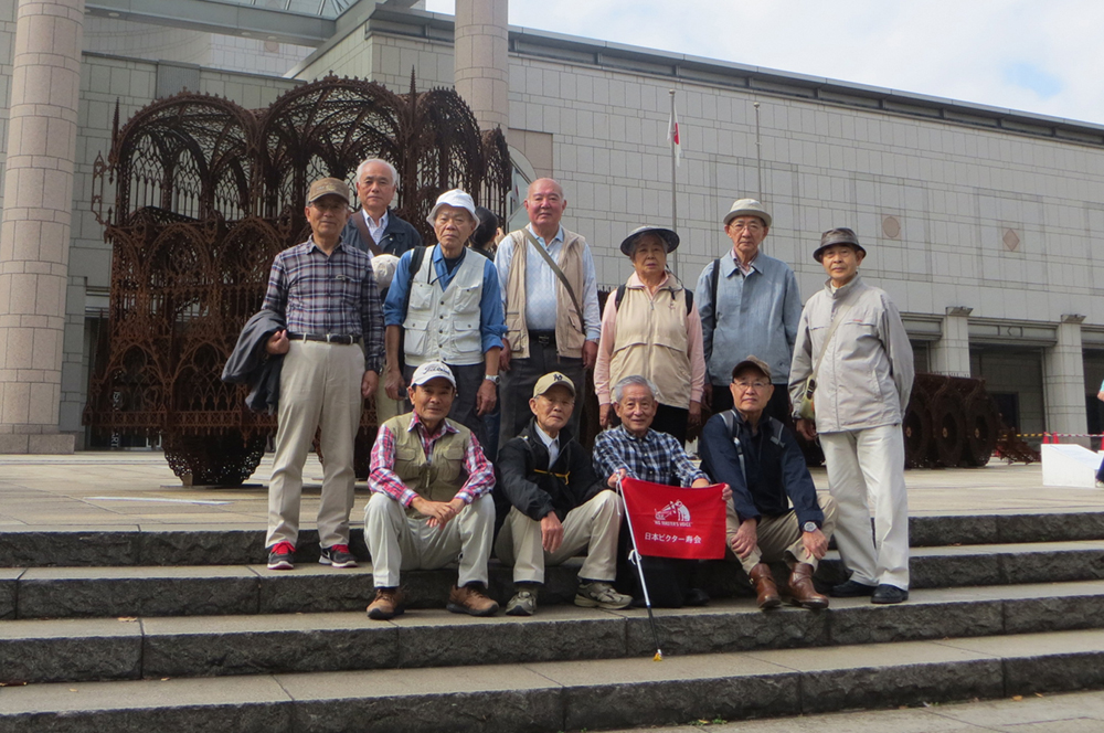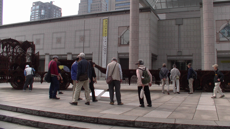 ☆開催日時平成26年10月25日(土)10時 横浜駅東口地下そごう大時計下:集合 ☆本日の散歩コース 横浜駅そごう大時計下 → 日産ショールーム → 横浜美術館 → JICA →赤レンガ倉庫 →ワールドポーター → 汽車道 → 桜木町駅 ☆横浜駅地下そごうデパート前の大時計の10時の鐘の音を合図に散歩出発、日産ショールームの最新乗用車を眺めながら、みなとみらいへ向向かう。「ヨコハマトリエンナーレ2014」と銘打った「現代アートの国際展」での大作の屋外展示物「ヴィムデルボア作・低床トレーラー」のある横浜美術館前で記念撮影。 外国人観光客を多く見かけながら、みなとみらい地区を散策。JICAでは、「海外移民の歴史展」を見学。 丁度、横浜港・大桟橋に豪華客船が停泊しているのが見え、予定に追加し、赤レンガ倉庫の岸壁から見学。「セレブティ・ミレニアム号」9万1千トン、全長:294m・・・で、神戸港へ向かうための寄港でした。 その後、ワールドポーターで、解散。お食事会を楽しみました。 ☆参加者 11名 (アイウエオ順、敬称略) 井上 茂、熊倉達郎、小泉八郎、今野之雄、佐々木一三、下條光輝、新谷則雄、出羽義武、古川 正、 前田房江、山本三樹夫 以上