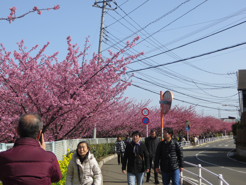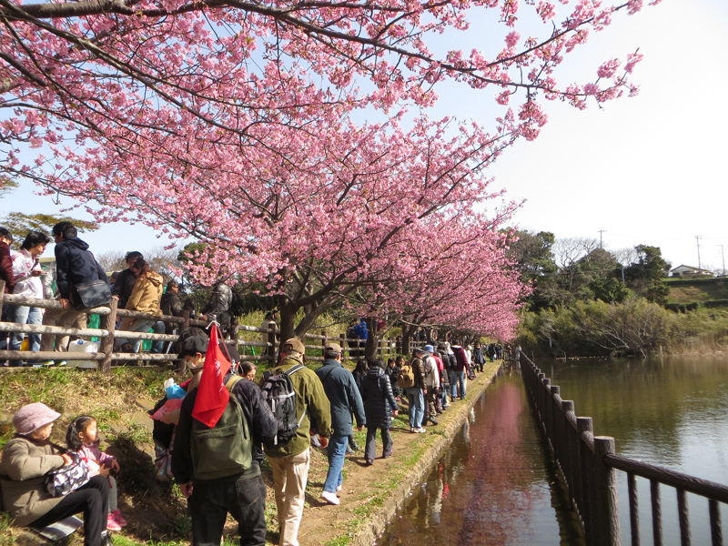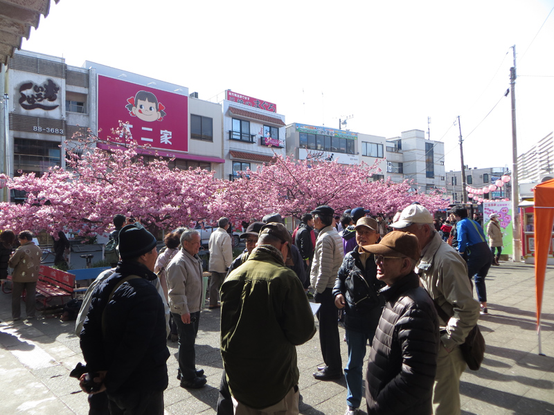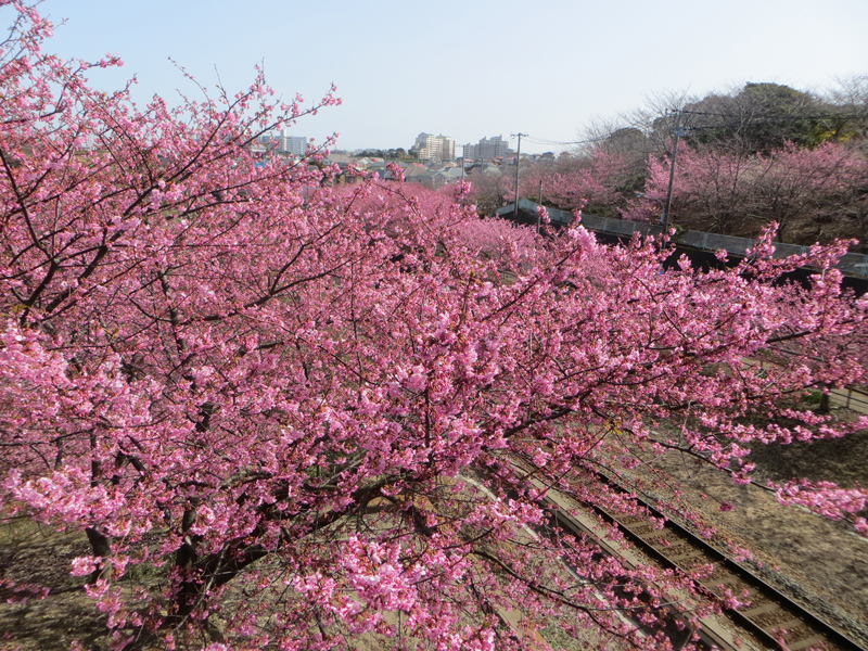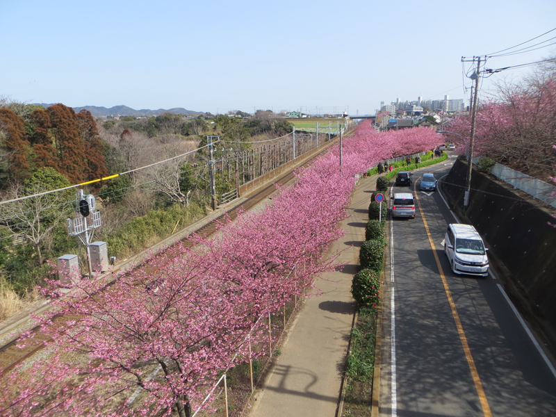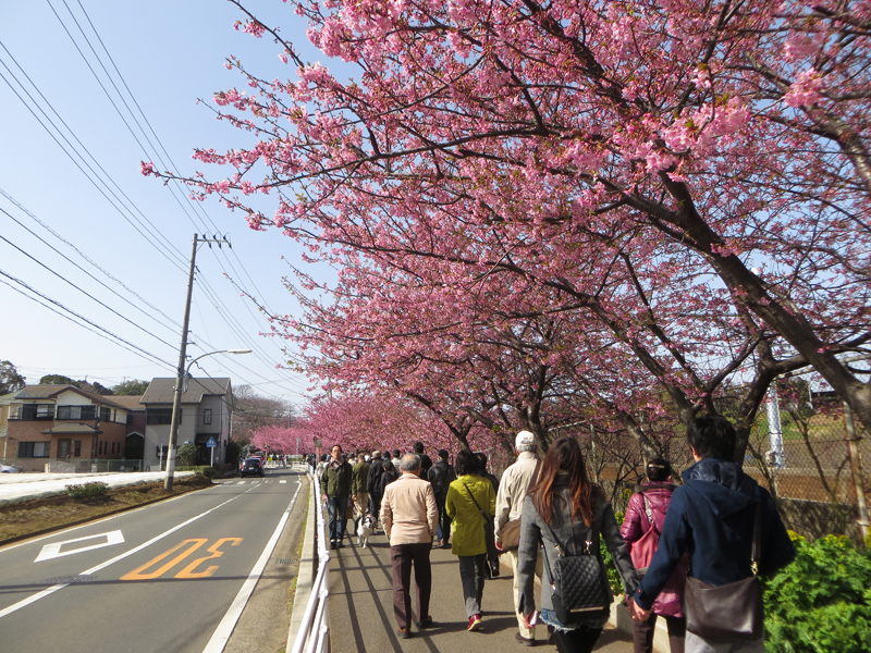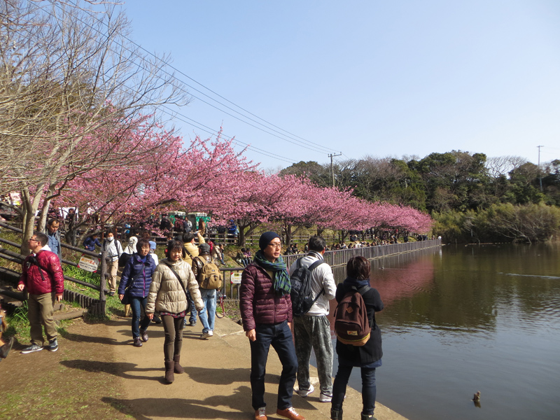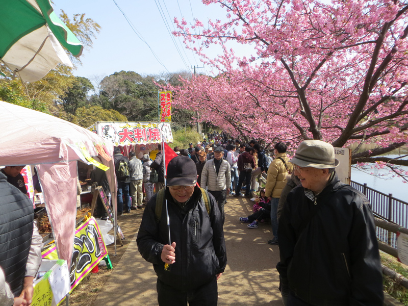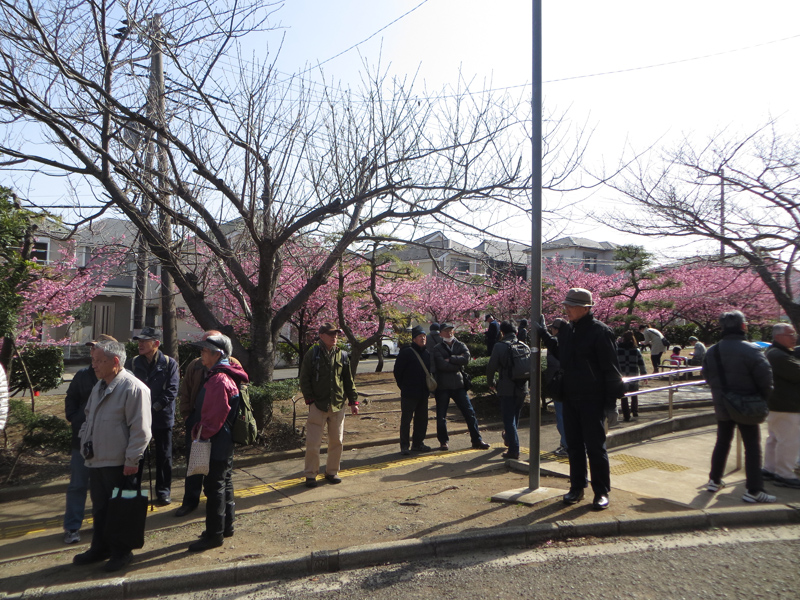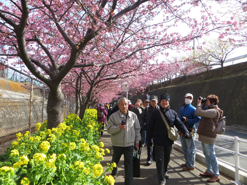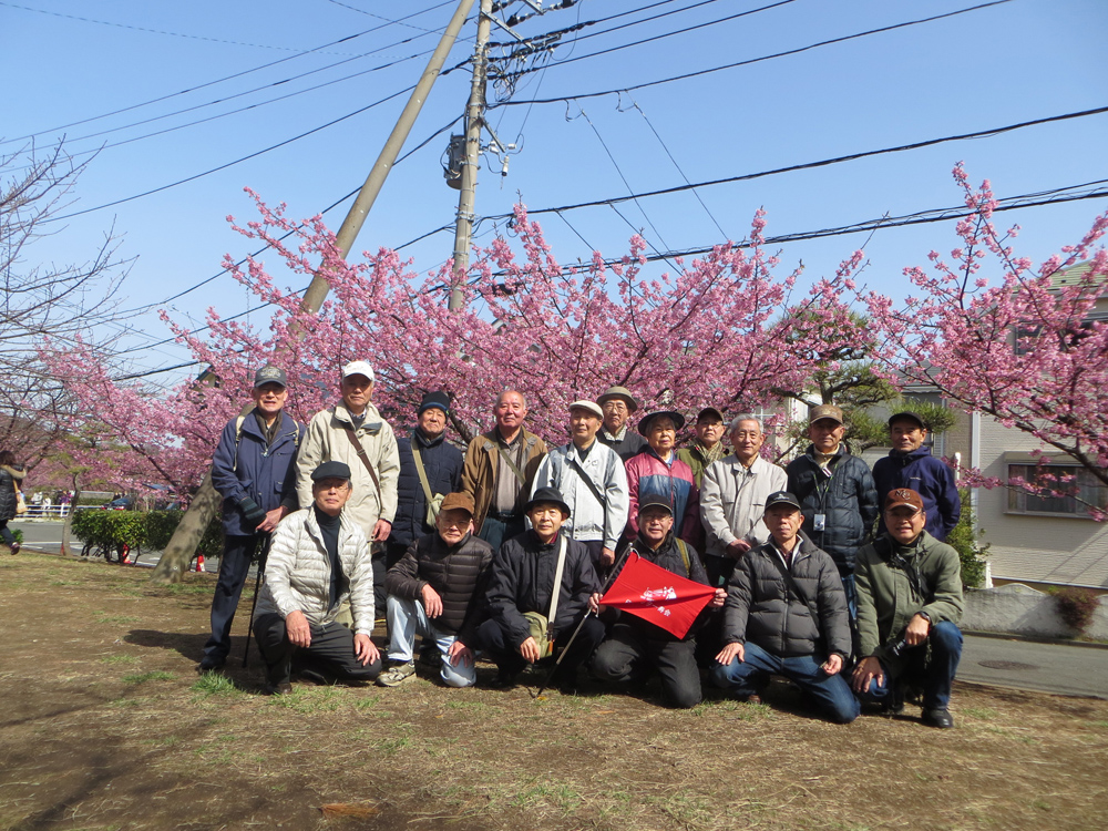 ☆開催日時平成27年2月28日(土)午前10時 京急線:三浦海岸駅集合 ☆主な散策コース 三浦海岸駅 ⇒ 桜道 ⇒ 小松ヶ池公園 ⇒ 妙音寺 ⇒ 三崎口駅 ☆前日は天気が悪く心配しましたが、当日は大変良い天気に恵まれ絶好の花見日和でした。 ( 河津桜は早咲きで花期が長く、ソメイヨシノより桃色が濃い )三浦海岸駅は桜まつり開催中で大勢の桜見物の人で賑わい大変な混雑、京急の沿線には河津桜と菜の花がとてもキレイに咲き、1.5kmにわたって千本以上の桜並木が続き見事でした。 途中、小松ヶ池公園で一休みゆっくりと桜見物、更に公園近くの三浦大根畑からは富士山も眺められました。 続いて巡礼と花めぐりの寺、真言宗妙音寺に立ち寄りました。( 仁王像、白寿観音、三浦七福神、不動明王、大日如来など多くの石仏が祀られてました ) そして最終目的地の三崎口駅に到着、美しい桜と菜の花を満喫した約2時間の散歩が終了、その後全員で昼食会を楽しみました。 ☆参加者 17名 (アイウエオ順、敬称略) 荒井喜根男、飯田耕治郎、井上 茂、 熊倉達郎、小泉八郎、今野之雄、佐々木一三、下條光輝、新谷則雄、 菅沼喜久雄、鈴木隆雄、出羽善武、中倉国男、平塚 直, 前田房江、山本三樹夫, 吉田親司 以上