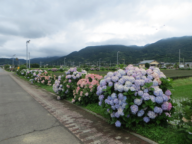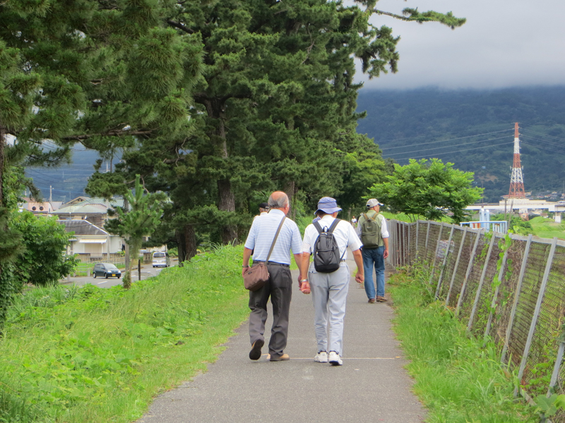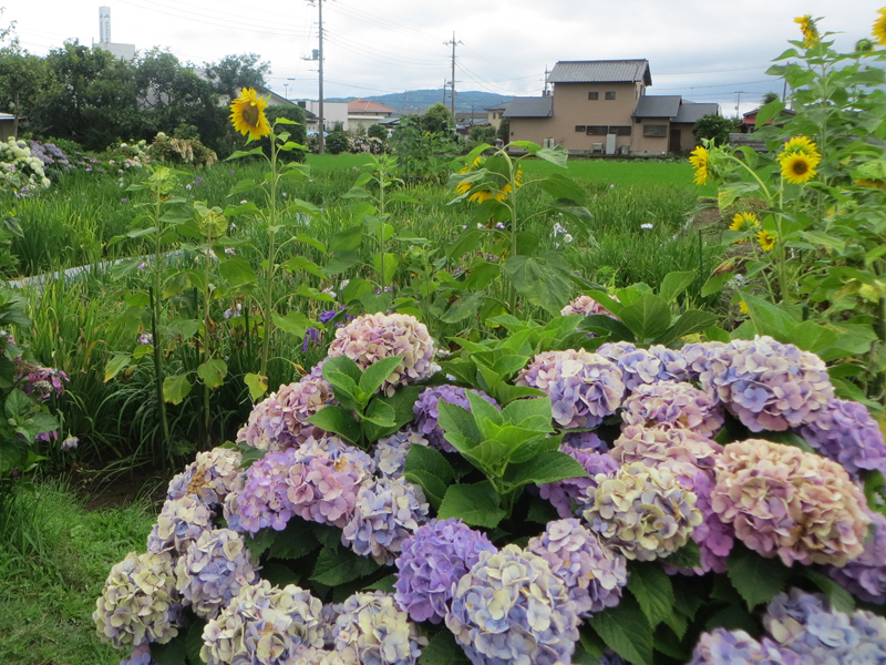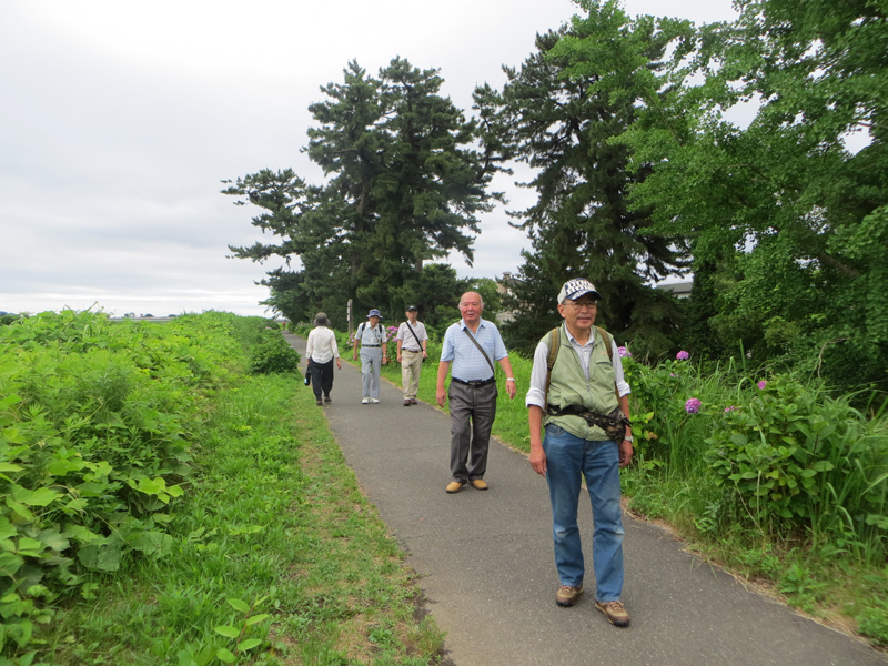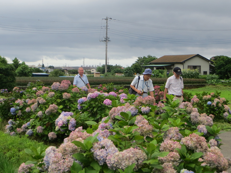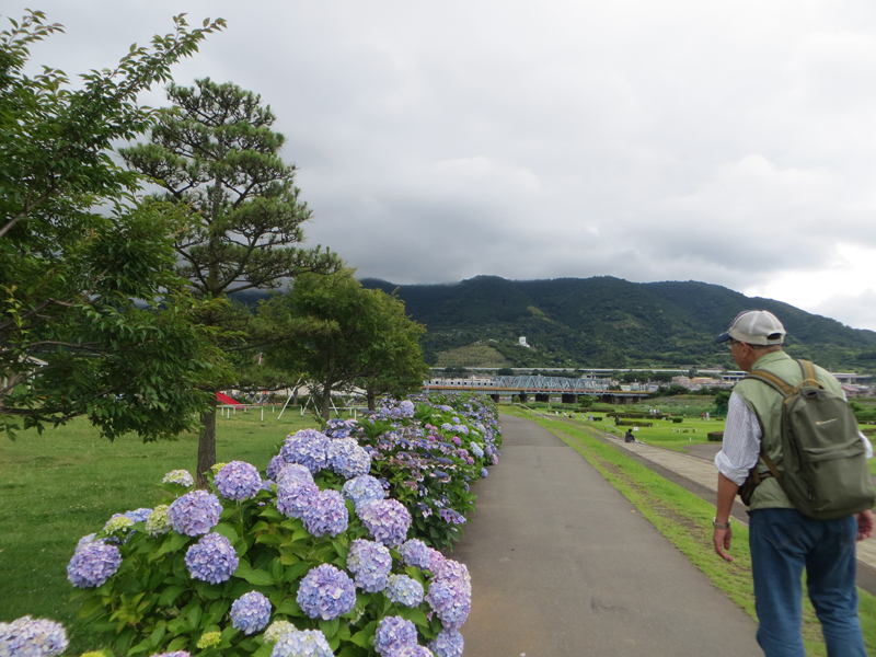 健脚5人 開成のあじさいを満喫 酒匂川の遊歩道も雄大 〜 強い雨の天気予報もはずれ 最高の散歩日和に 〜 ☆散策コース 開成駅 ⇒ 酒匂川遊歩道 ⇒ あじさい農道 ⇒ 瀬戸屋敷 ⇒ 新松田駅 ☆梅雨の季節、前々日時点での当日の予報で午前中は「強雨」という事で実施そのものがあやぶまれたが、実際は傘もいらず、強い日差しもなく絶好の散歩日和となりました。 ☆最初の酒匂川(さかわがわ)遊歩道は丹沢山地を見ながらの気持ちのいい散歩にはもってこいのコース、散歩やジョギングを楽しむ多くの人たちとすれちがった。昔は「洪水」にみまわれたとの事で第2堤防も築かれていた。周辺は「家庭菜園」「つり池」「スポーツ公園」になっており,多くの人が楽しんでおられました。 ☆「あじさい農道」のコースもすばらしかった。田んぼの周辺を囲む農道一帯にあじさいが、それは見事という以外の言葉がないくらいすばらしい里でした。 ☆あじさい観音香徳院の隣にかやぶき屋根の大きな屋敷が見えてきました。「瀬戸屋敷」です。江戸時代後期に建てられた「瀬戸家」の住宅、いわゆる「古民家」で「式台」とよばれる玄関や,中は渡り廊下のある書院づくりの屋敷など格式の高い住居でした。 ☆スタートから2時間半、休憩もとらず歩けたのは道が平坦であったからです。帰路は「瀬戸屋敷」近くからバスで小田急線新松田駅へ。 ☆今までの「駅から散歩」の参加者としてはもっとも少ない参加者となりましたが,内容としては最高の「駅から散歩コース」でした。 ☆参加者 5名 (アイウエオ順、敬称略) 飯田耕治郎 、 新谷則雄 、 出羽善武 、 平塚 直 、 古川 正 以上