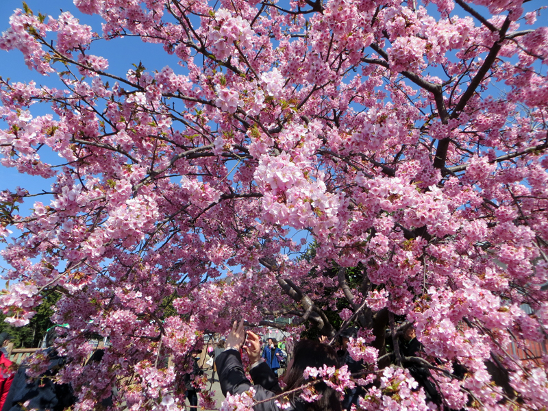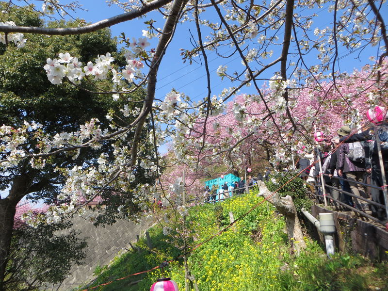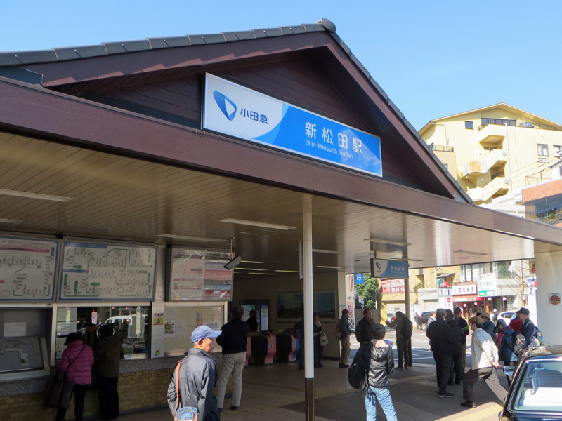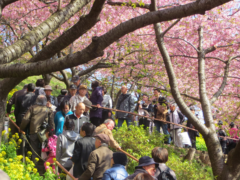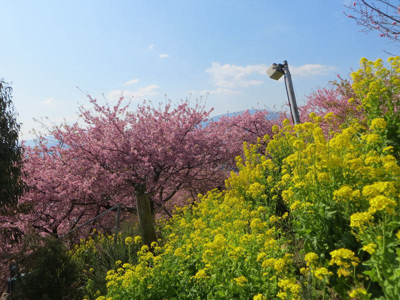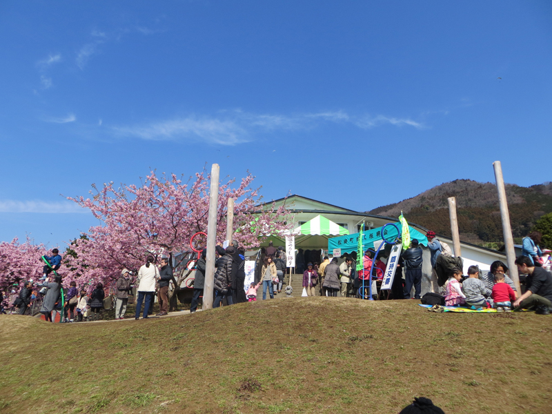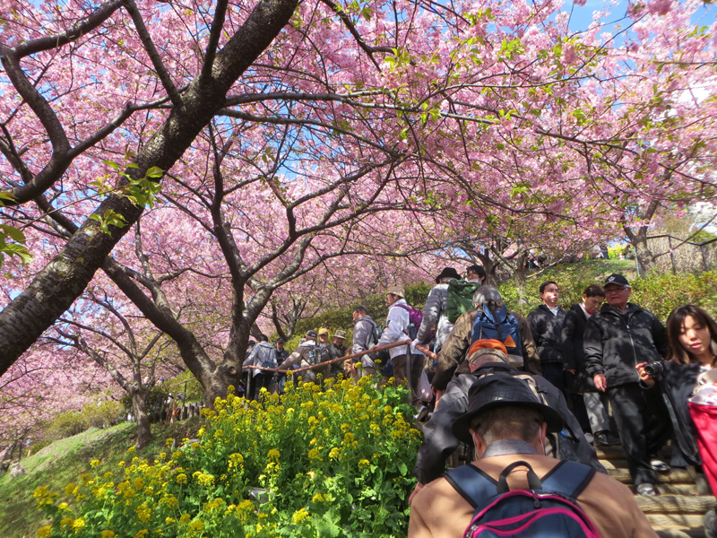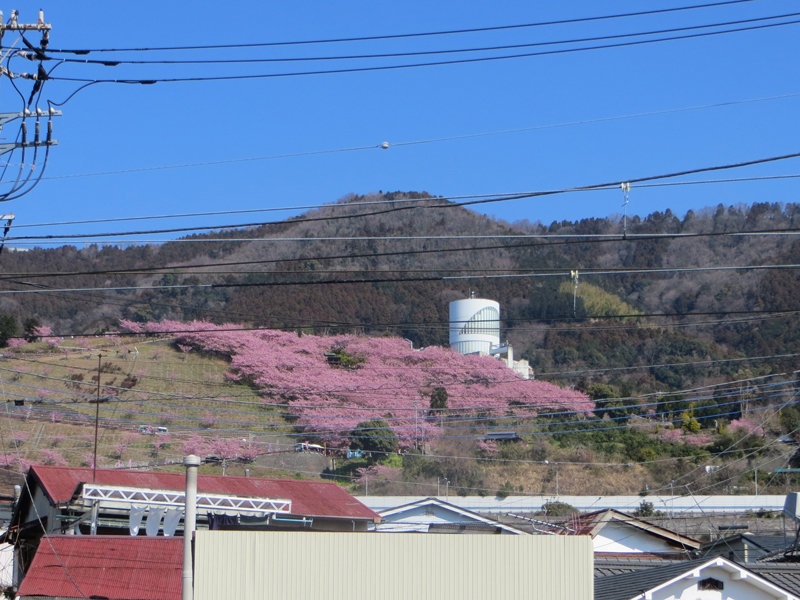 天気快晴 松田町「河津桜」満開、富士山くっきり 健脚12名が素晴らしい景色を満喫☆開催日・集合場所 平成28年2月27日(土)午前10時 小田急線:新松田駅北口 ☆ 主な散策コース 新松田駅 ⇒ 中沢酒造 ⇒ JR松田駅前 ⇒ シャトルバス乗車 ⇒ 松田山ハーブガーデン ⇒ふるさと鉄道 ⇒ つるし雛会場 ⇒ 河津桜道 ⇒ 新松田駅 ☆2月27日(土)午前10時 小田急線:新松田駅北口に12名が集合、中沢酒造を見学後JR松田駅まで歩き、そこからシャトルバスで松田ハーブガーデンに向かった。 天気快晴 雲一つない絶好の観光日和に恵まれ、濃いピンク色の河津桜が山の麓一帯に咲き誇っている松田山ハーブガーデンや河津桜道の散策に、観光客が松田駅前のシャトルバス乗り場に長蛇の列をなしていた。松田町の「桜まつり」が開催中であった。 ☆駅から散歩も天気で大きく左右される。一週間前、2月20日(土)に支部役員によるコース下見の際は、あいにくの雨天で傘をさしての散歩であった。当然ながら観光客もまばら、富士山も雲に覆われ全く見えなった。 ☆本番の2月27日は快晴、大勢の観光客のなか、松田山ハーブガーデン一帯の満開の河津桜や、立派なつるし雛、そして富士山の絶景を眼に焼き付けた後、大勢の観光客と共に、河津桜道を歩いて下り、小田急線 新松田駅へ到着。 - 以上 ☆参加者 12名 (アイウエオ順、敬称略) 荒井嘉根男、飯田耕治郎、熊倉達郎、佐々木一三、新谷則雄、菅沼喜久次、出羽善武、中倉国男、 平塚 直、前田房江、山本三樹夫、吉田親司 以上