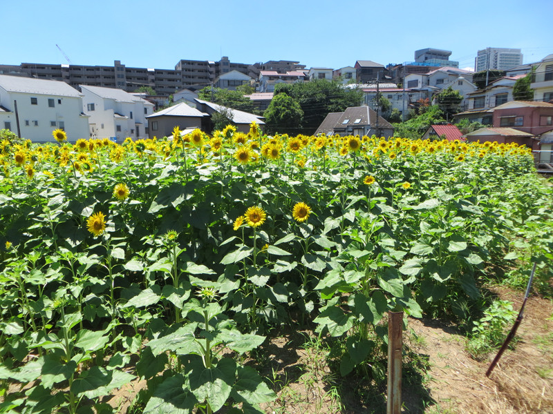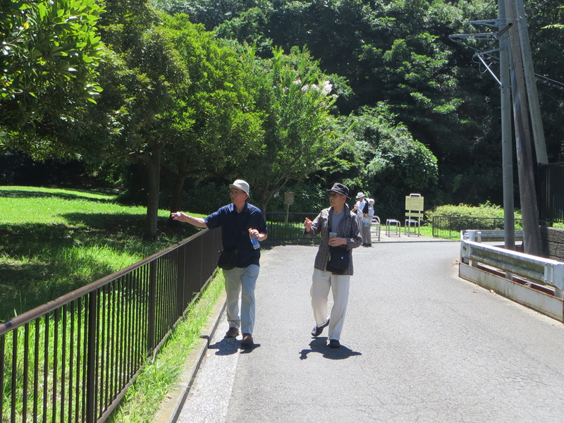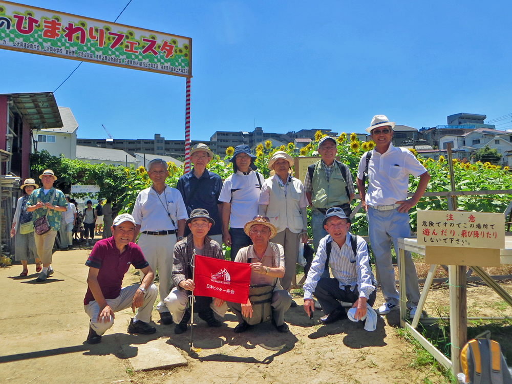 ☆開催日・集合場所平成28年7月30日(土)・京急上大岡駅 改札口集合 ☆ 主な散策コース 京急上大岡駅 ⇒ 久良木公園 ⇒ 眞光寺 ⇒ 日行寺 ⇒ 西福寺 ⇒ 大賀の郷(ひまわりフェスタ会場) ⇒ 京急上大岡駅 梅雨明けの土用丑の日、熱中症を気にしながら小高い丘を登り久良木公園に向けてスタート。久良木公園は根岸、磯子の海を埋立時に谷戸地区にあった場所が整備され公園に成ったとの事で、桜の森、自由広場、大池、中池、丘陵が有り、樹林風景と様々な生き物が楽しめる。 続いて眞光寺(真言宗) →黒船見物の丘 →日行寺(日蓮宗)へ、関東大震災で倒壊した火葬場の後に御堂を建立、現在に至る →西福寺(曹洞宗)へ、六地蔵の先 →大賀の郷(ひまわり畑)に到着。 3万本のひまわりが見どころで、新名所になり大勢の人がおとずれていました、上大岡にこの様な、ひまわり畑があるのに驚きです。 今回の散歩は急坂が多く心配しておりましたが、上大岡駅に全員無事にゴールできました。 駅前での昼食会を楽しみ大変盛り上がりました。 ☆参加者 12名 (アイウエオ順、敬称略) 荒井嘉根男、飯田耕治郎、井上 茂、熊倉達郎、佐々木一三、下條光輝、新谷則雄、 出羽善武、 前田房江、三木吉弘、山本三樹夫、吉田親司 以上