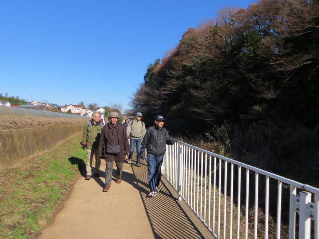 ☆開催日・集合場所平成28年12月17日(土)午前10時 相鉄線:三ツ境駅集合 ☆ 主な散策コース 三ツ境駅 ⇒ 日本ビクター家族アパート・第二/第三清和寮跡地訪問 ⇒ 和泉川散歩コース ⇒ 貉窪(むじなくぼ)公園 ⇒ 阿久和見晴らしの丘 ⇒ 長屋門公園 ⇒ 夢庵 ⇒三ツ境駅 ☆当日は雲一つない快晴の天気で風もなく温かい絶好の散歩日和でした。一週間前に行った三ツ境コースの下見の日(12月10日)も天気快晴で支部幹事6名全員揃っては今年初めてでした。 ・散歩コースの「富士見通り」や「見晴らしの丘」からは「日本一の富士山」がくっきり見え、気持ちのいい散歩日和となりました。 ・このコースは筆者が毎週歩いている散歩コースです。わたしもお世話になった日本ビクターの家族アパートと独身寮(第二/第三清和寮)、現在は住宅が立ち並んでおり面影はありませんでしたが隣にあった三ツ境小学校より当時あった場所をみなさんに紹介しました。 ・そのあと横浜市の瀬谷区を南北に縦断する和泉川に向かいました。和泉川は、瀬谷市民の森を源流として、二ツ橋の水辺、東山の水辺、宮沢ふれあいの水辺など六つの水辺があり、近隣の住民の散歩コースとして多くの方が親しんでおられます。 ・最後に訪れた「長屋門公園」は江戸時代後期の庄屋さんの家で、当時のまま保存されています。家の中には当時の囲炉裏やかまどなどがあります。また、一年を通して節分や月見などのイベントが開催されており、特に7月上旬に行われる「灯籠祭り」は珍しいお祭りとして有名です。 ・この日は本年最後の「駅から散歩」の日でしたので、ビクターの家族アパートと独身寮があった場所のすぐ近くにある食事処「夢庵」で忘年会をおこないました。参加者13名がそれぞれ今年一年を振り返っての感想を話しました。快晴で風もなく暖かな日で、富士山もきれいに見え、元気に歩けることに感謝しつつ第51回目も最高の「駅から散歩」となりました。 ☆参加者 13名 (アイウエオ順、敬称略) 荒井嘉根男、飯田耕治郎、井上 茂、熊倉達郎、佐々木一三、鈴木隆雄、下條光輝、 新谷則雄、 中倉国男、平塚 直、三木吉弘、山本三樹夫、吉田親司 以上
