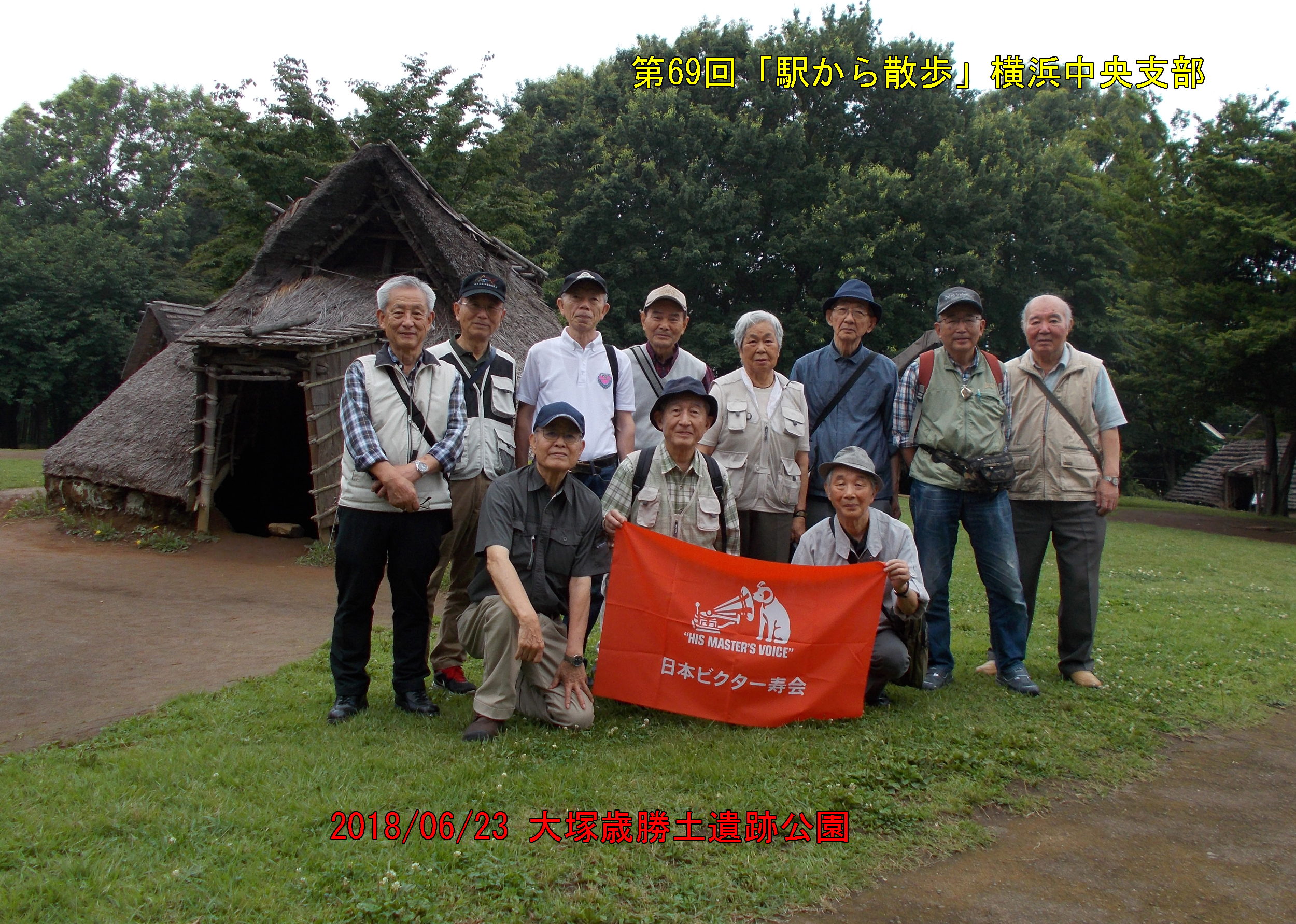 カヤ葺屋根の修繕は、材料のカヤの入手と作業職人の手配が年々困難になっておりご苦労されておられるようです。 ☆次の目的地の大塚・歳勝土遺跡公園は都筑民家園のすぐ隣で、弥生時代の竪穴住居・環濠・墓地が復元されています。大塚遺跡は竪穴住居の集落で周囲は環濠でかこまれた構造となっております。歳勝土遺跡は大塚遺跡の住人の墓地で、ひときわ広い墓地は村オサの墓だと推測されています。 ☆本日最後の目的地は横浜歴史博物館で、ここでは「横浜で生きた人々の生活の歴史」をテーマに3万年にわたる市域の歴史を展示しています。展示されている展示物をじっくり見学すると大変時間がかかりますので、本日は歴史劇場でビデオ映像を鑑賞し解散場所のセンター南駅に向かいました。 本日のコースはフラットで距離も短かったので順調に進行し、センター南駅で解散後昼食会を行いました。 雨が予想された日でしたが、幸いまずまずの天気で散歩ができました。 ☆ 参加者 11名(アイウエオ順,敬称略) 荒井嘉根男、飯田耕治郎、井上 茂、熊倉達郎、佐々木一三、新谷則雄、出羽善武、平塚 直、 前田房枝、三木吉弘、山本三樹夫 以上
