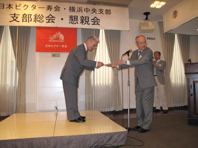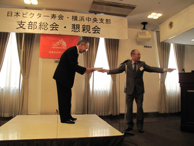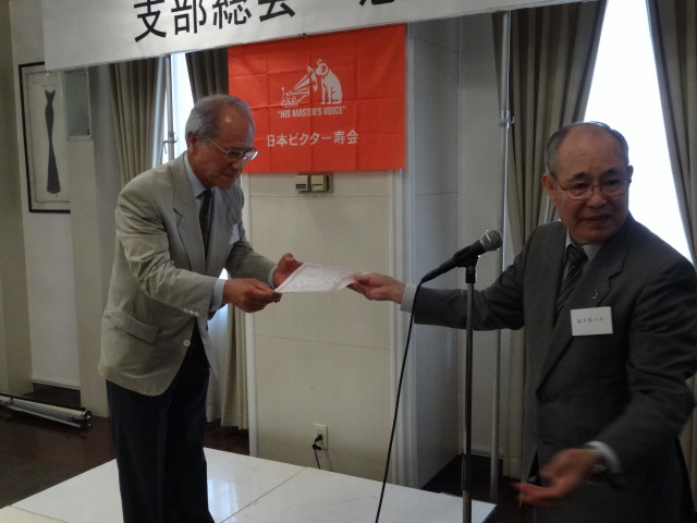 平成26年度支部総会 横浜中央支部 佐々木一三 去る5月28日(水)横浜駅西口の横浜国際ホテルに於いて、支部会員24名の方々にご出席いただき年次総会を開催いたしました。 冒頭、岩崎会長より、寿会全般とJVCケンウッド社&企業年金基金の現状について、幅広く話を頂戴し、総合司会:平塚監事により、進行いたしました。 第1部・・・総会 物故者:加山久子享年86歳、福本昌実享年84歳、志田新一享年90歳 のご冥福をお祈りいたしました。 議案1:H25年度活動報告と会計報告(案) 議案2:H26年度活動計画と収支予算(案) を審議いただき、原案通り、満場一致で承認をいただきました。 |