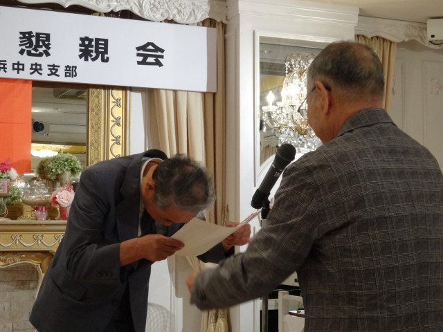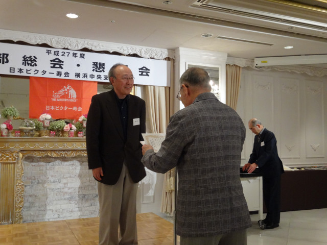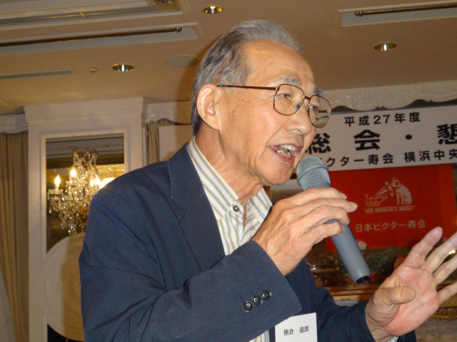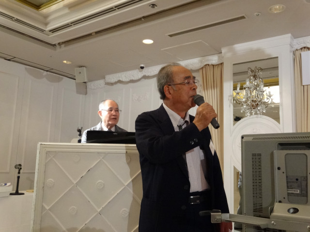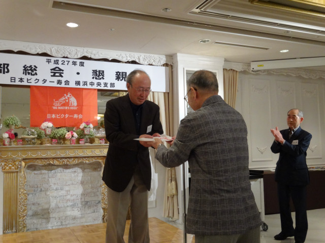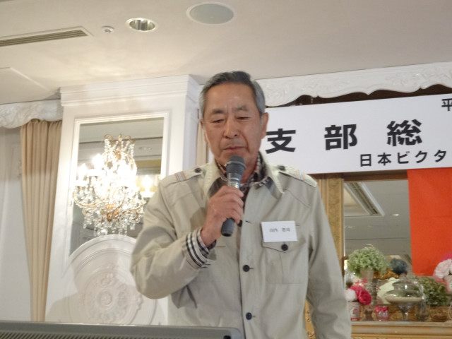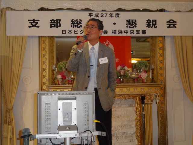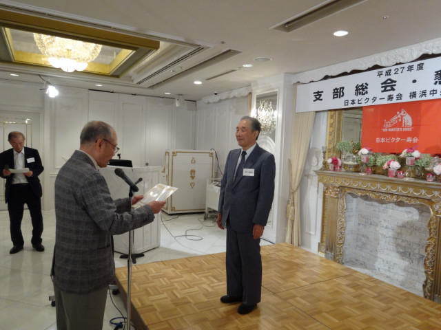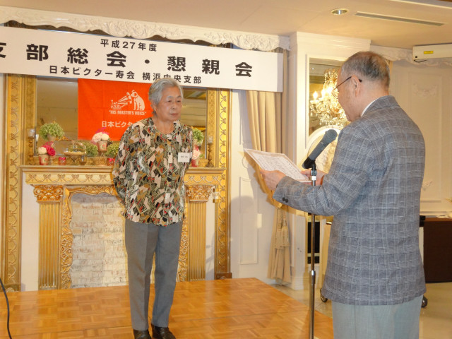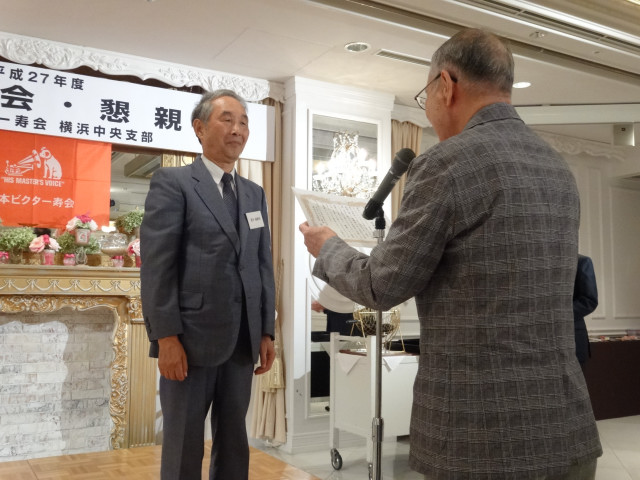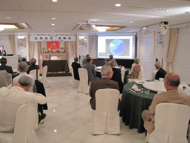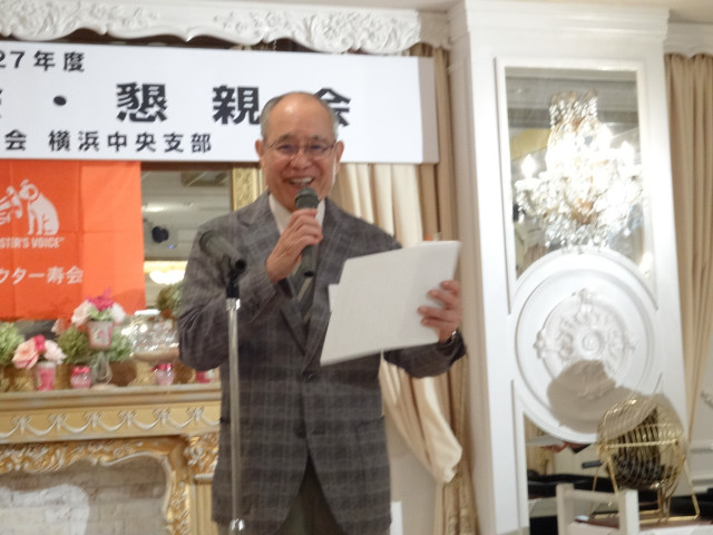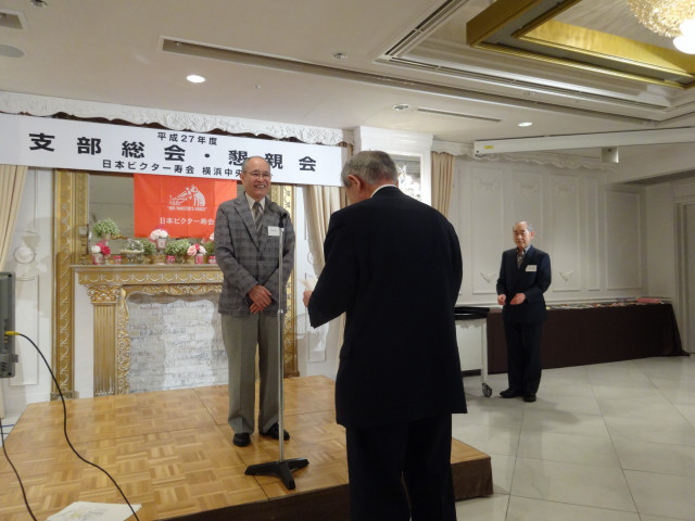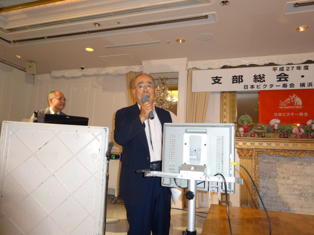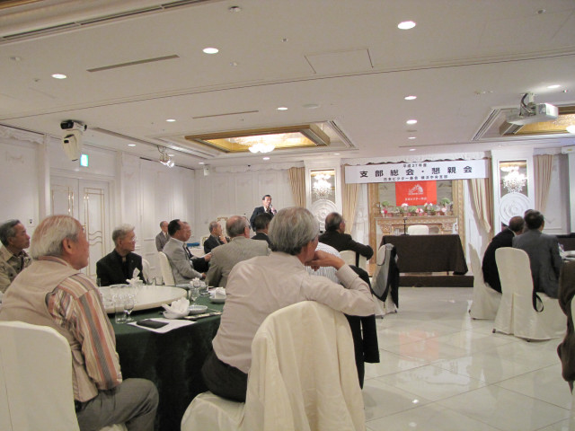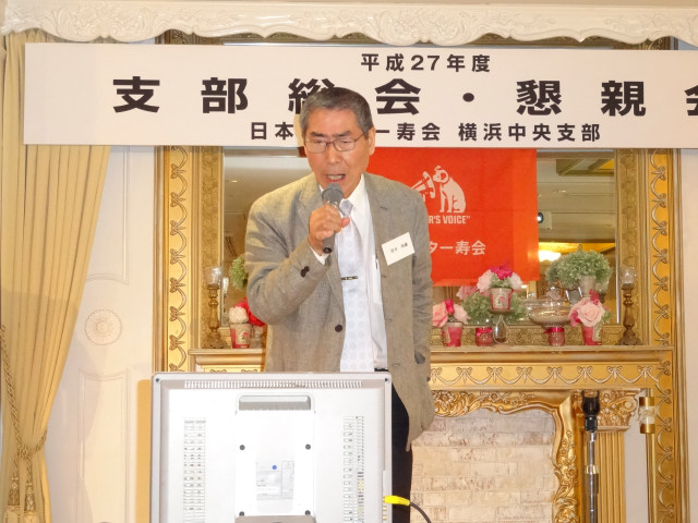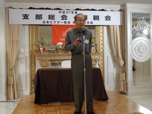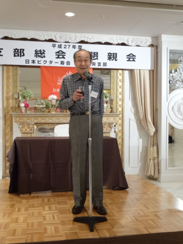 平成27年度支部総会・懇親会 横浜中央支部支部長 佐々木一三 去る5月16日(土)横浜駅西口のホテル・プラムに於いて、支部会員29名の方々にご出席いただき年次総会を開催いたしました。 冒頭、岩崎会長より、寿会全般とJVCケンウッド社&企業年金基金の現状について、幅広く話を頂戴し、総合司会:佐々木支部長により、進行いたしました。 第1部 ・・・総会 物故者: 西村松三様H26年10月 享年86歳[保土ヶ谷区] 本田雄幸様H26年12月 享年83歳 「保土ヶ谷区] 結城通男様H27年3月 享年92歳 [磯子区]のご冥福をお祈りいたしました。 議案1:平成26年年度活動報告と会計報告(案) 議案2:平成27年度活動計画と収支予算(案) 議案3:任意満了に伴う役員の改選(案) を審議いただき、原案通り、満場一致で承認をいただきました。 第2部 ・・・懇親会 司会:平塚副支部長 最年長 荒井金次郎(95歳)さんにより乾杯のご発声で、スタート。長寿のお祝い対象者へのお祝いとお喜びのご挨拶がありました。 *特別講演:「絶景・天空のイベント」 当支部が誇る会員「天空の写真家 山崎四明氏」による天空のフンタジックな写真をスライドによる解説で、ご紹介いただきました。 山崎 四明(やまざきしめい)氏 1932年生まれ、東京理科大学理科学部卒業、日本ビクターではディスク関連でご活躍、定年後、百武彗星に魅せられ、トルコ皆既日食で、日食病にかかり以後皆既月食と空のイベントに挑戦中。千葉天体写真協会に所属。 その後、ビンゴゲームカラオケなどでお楽しみいただき熊倉達郎さんの中締めで、散会いたしました。 *長寿のお祝い(敬称略) *喜 寿(77歳) 青柳成幸、荒井嘉根男、沖田守、佐々木一三、高木康男、宮坂徳久 計6名 *米 寿 (88歳) 岡田幸吉、前田房枝、山本信久、吉田正雄 計4名 *白 寿(99歳) 野谷松太郎 計1名 *金婚式: 荒井嘉根男、稲見衛、佐々木一三、熊倉達郎 計4名 |